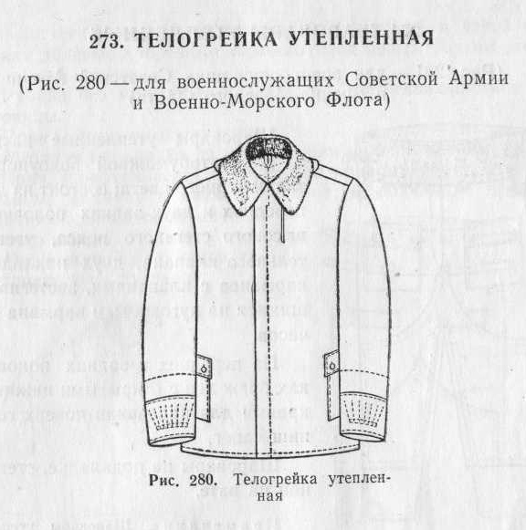 С 1955 года на снабжении военнослужащих, проходивших службу в особо холодных районах, стояла утепленная телогрейка с шароварами. Хотя она и именовалась телогрейкой, по формальным признакам - это все же скорее куртка. Телогрейками в ассортименте военной формы было принято называть стеганные «поддевки» под шинель или под комбинезон и их производные, но наименования вещей в советской военной форме одежды порой зависели от традиции или каких-то субъективных факторов, что мы вскоре увидим на примере куртки 1966 года, которая для разных категорий военнослужащих именовалась по-своему.