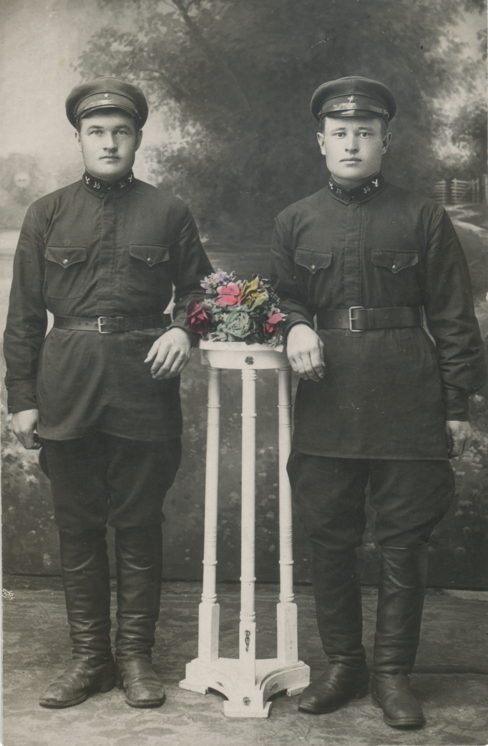 Красноармейцы 35-й стрелковой дивизии с ветеринарными значками образца 1922 г. Единственный известный снимок с шифровкой и один из самых поздних снимков с такими эмблемами, не ранее 1928 г. Коллекция автора