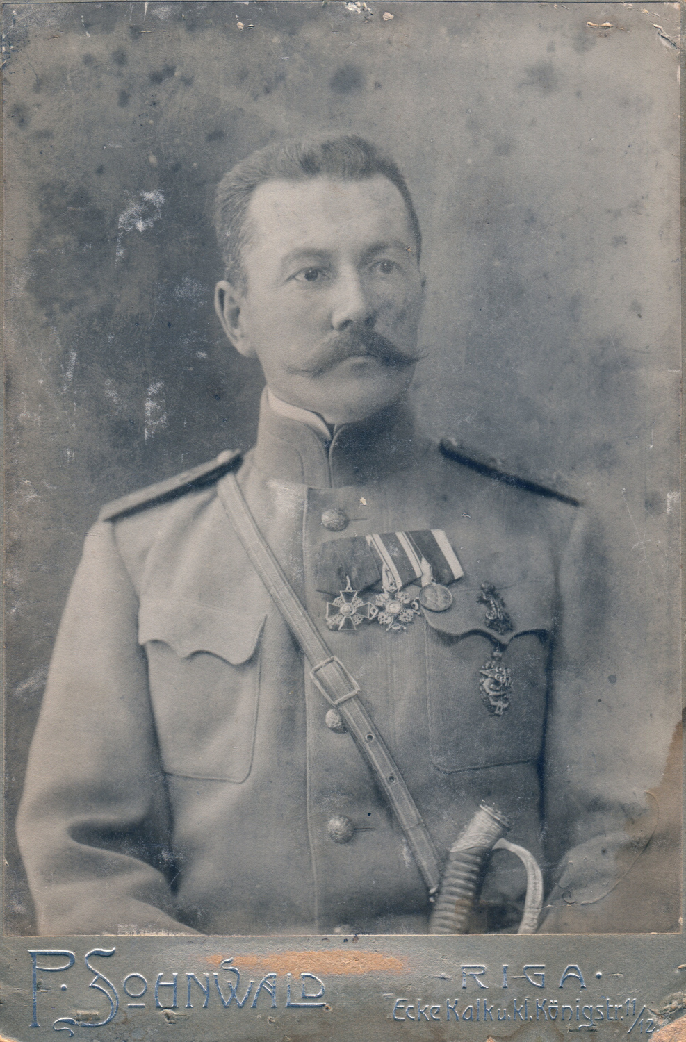 Четко различимый на данном снимке знак Усть-Двинской крепости, учрежденный 5 мая 1910 года в память 200-летнего юбилея крепости (8 августа 1910 года) [11, с. 75] позволил достоверно атрибутировать место службы запечатленного на ней лица.