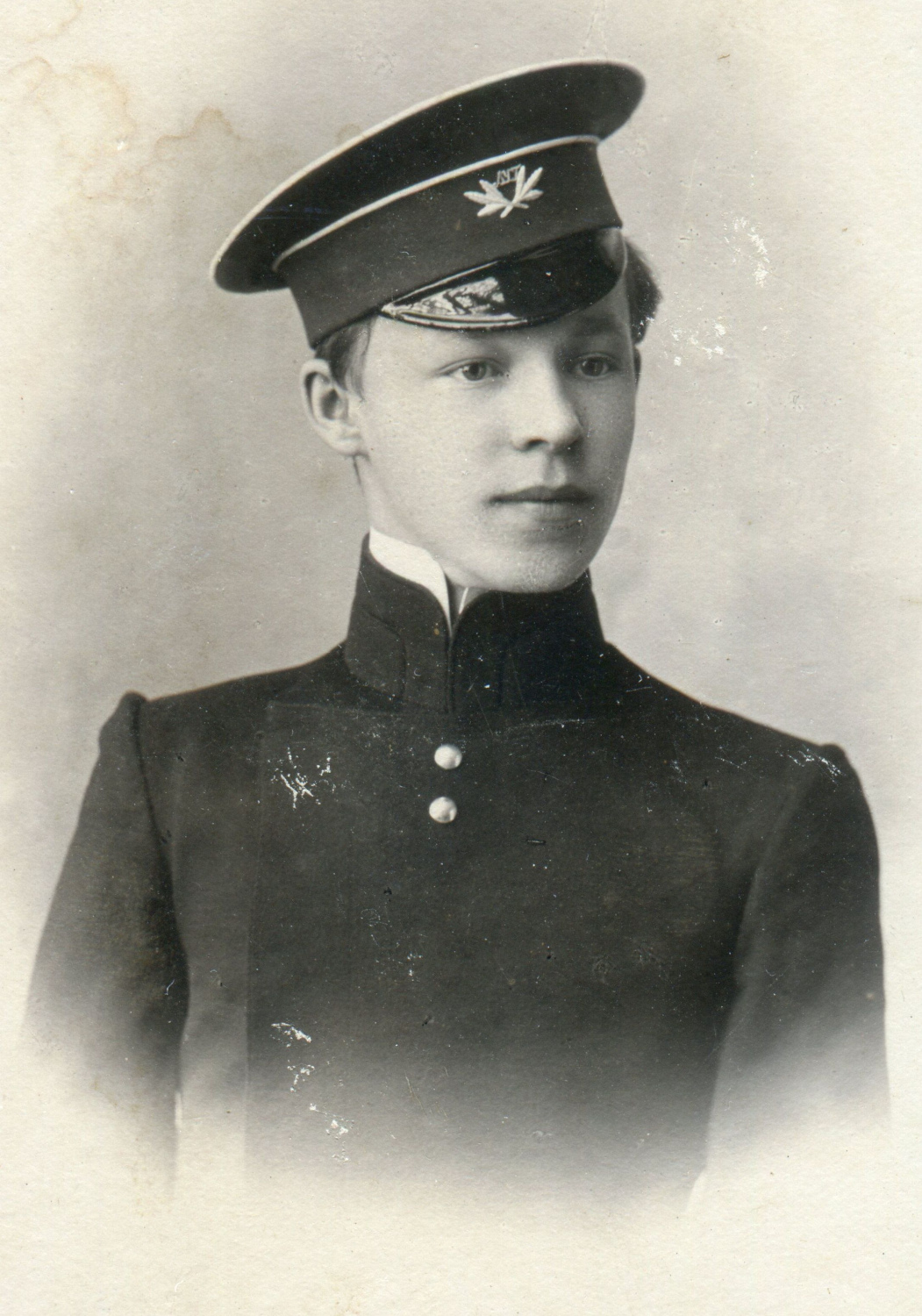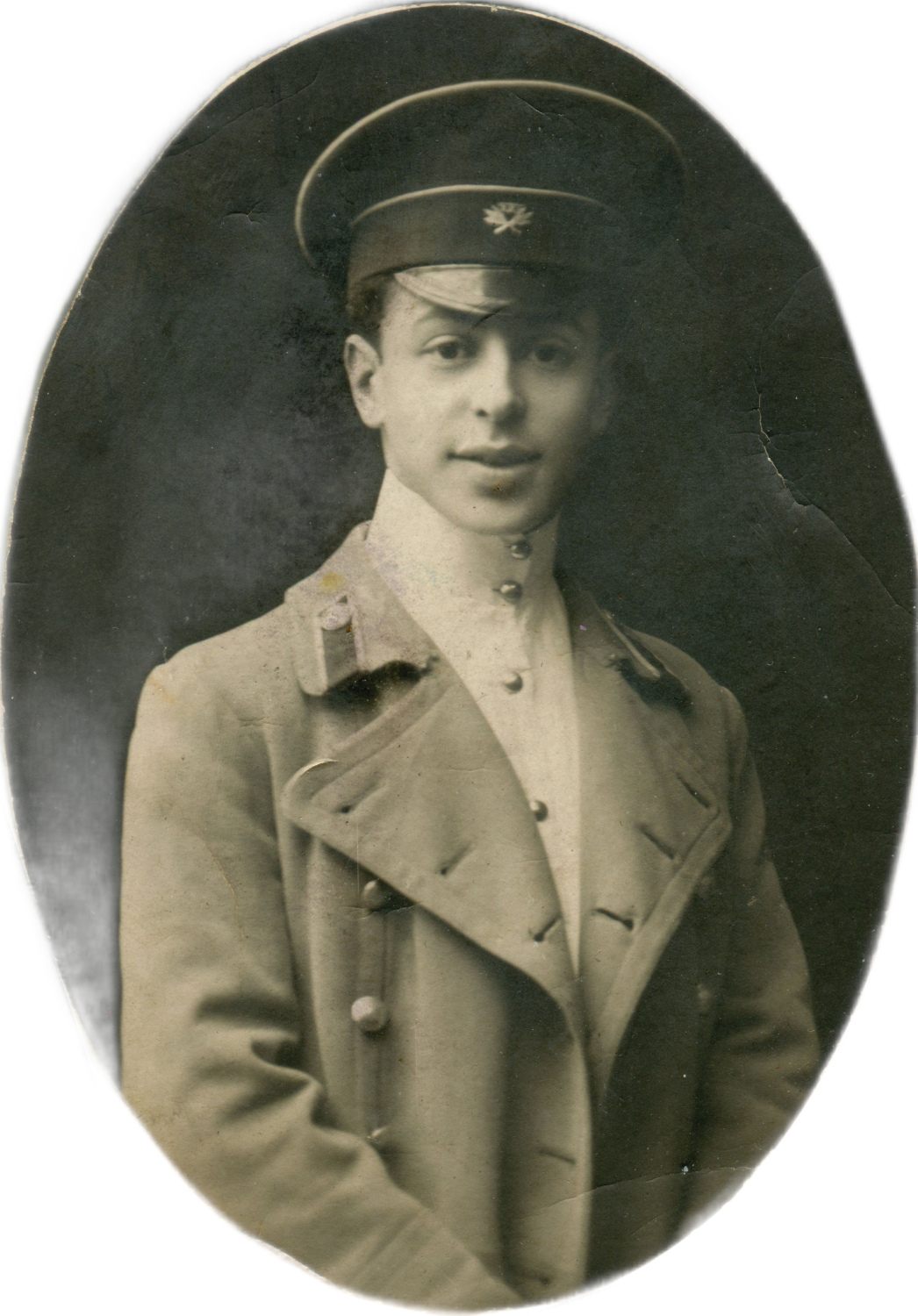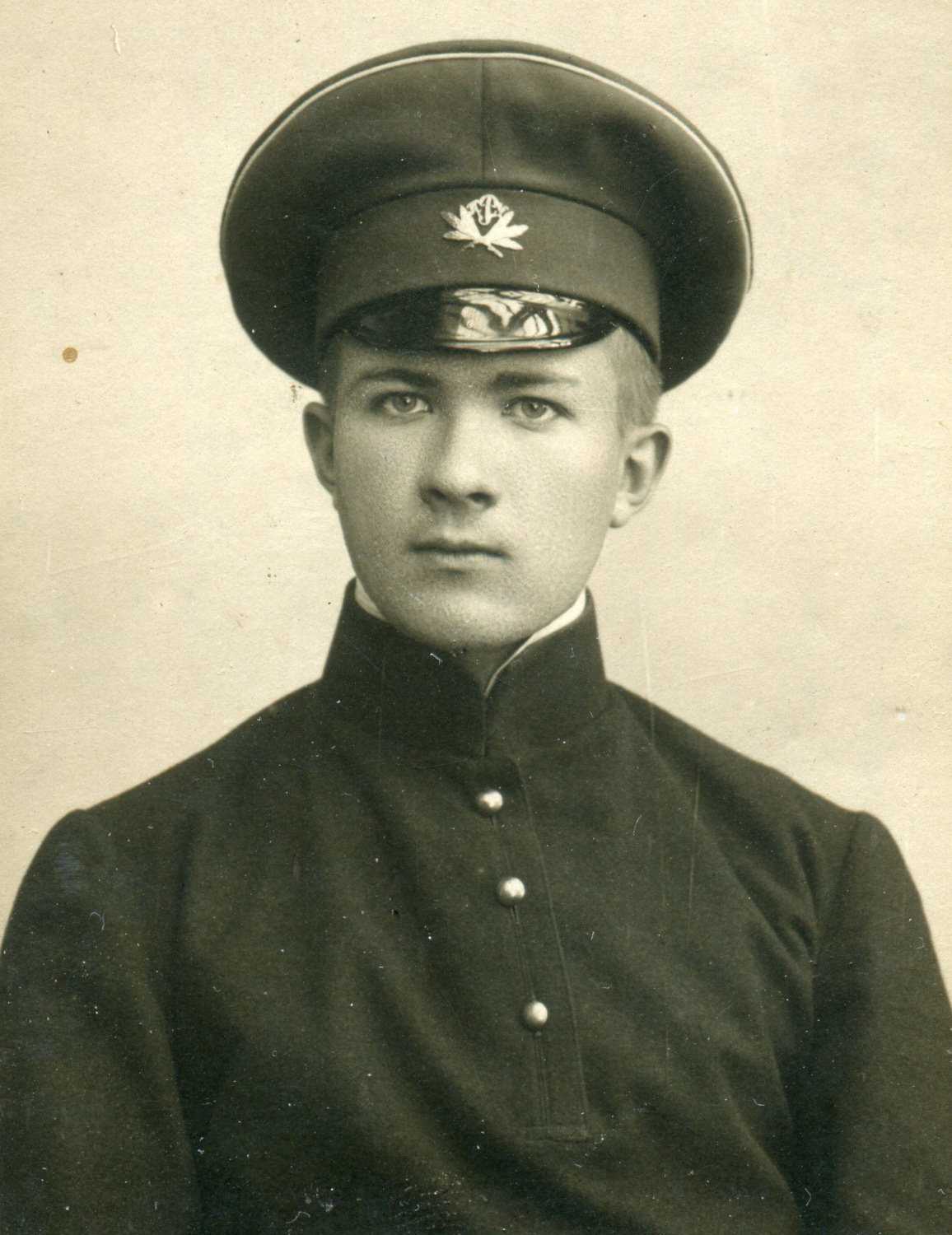 Рисунок 8. Учащийся Петроградской гимназии императора Петра Великого Сергей Лукьяненко (?). Атрибуция согласно форменным знакам на поясной пряжке и околыше фуражки [38]. Коллекция автора.