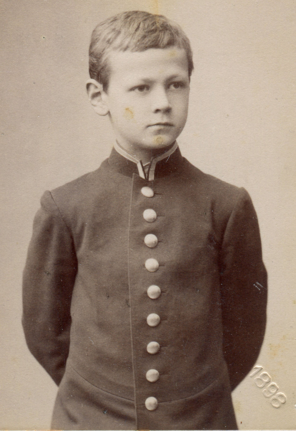 Рисунок 17. Учащийся гимназии или реального училища. 1898 г. Корректно атрибутировать учебное заведение невозможно в связи с отсутствием необходимых атрибутирующих элементов и неочевидной цветопередачей. Коллекция автора.