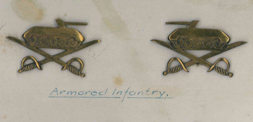 19. Зеркальная пара эмблем механизированной пехоты в виде изображения бронетранспортера на скрещенных саблях. |