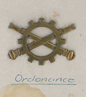 27. Эмблема службы снабжения боеприпасами в виде изображения шестеренки на скрещенных орудийных стволах. |