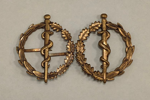 Зеркальная пара эмблем медицинской службы, принятые для Бундесвера, которые отсутствовали на проектном планшете «F.W. Assmann & Söhne». Коллекция автора