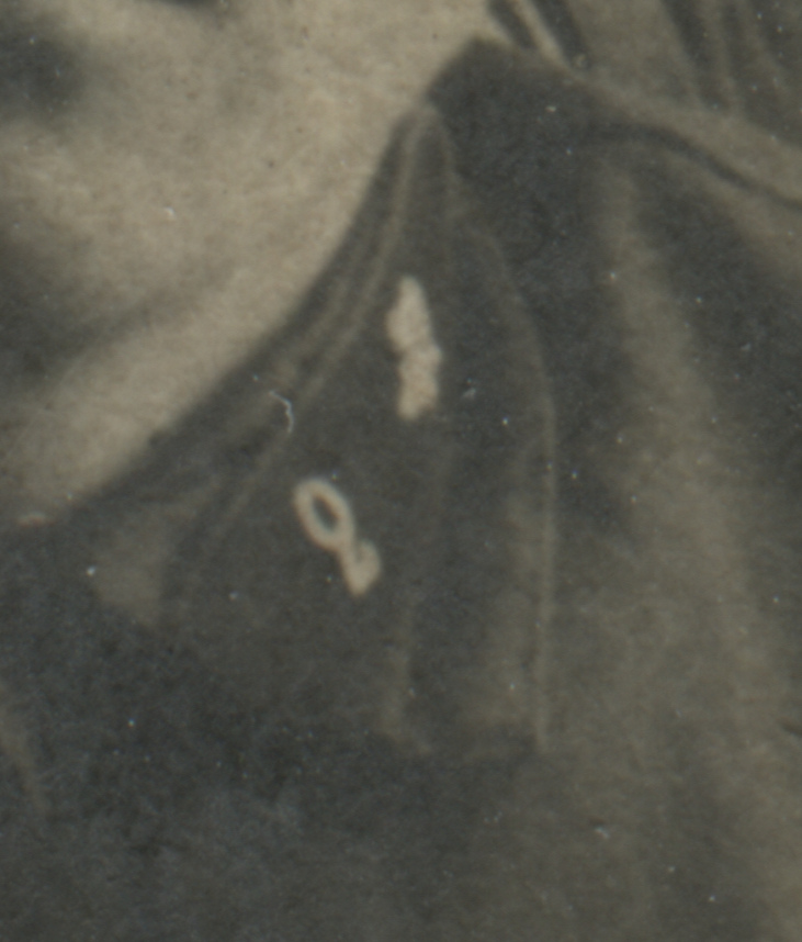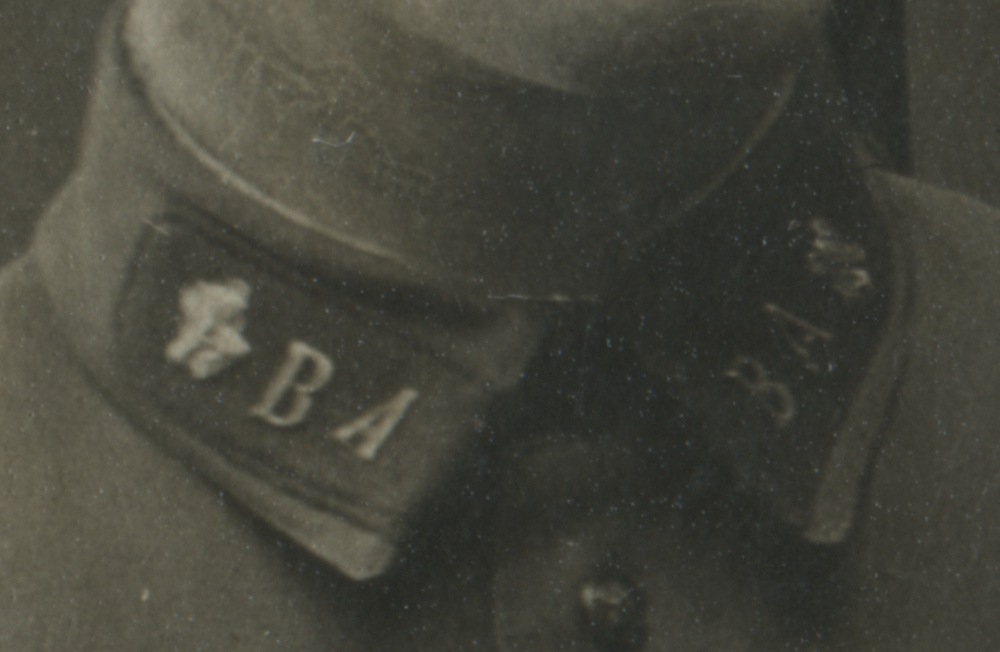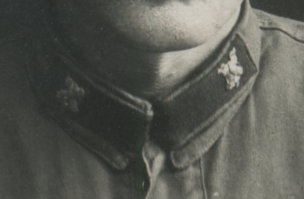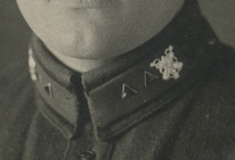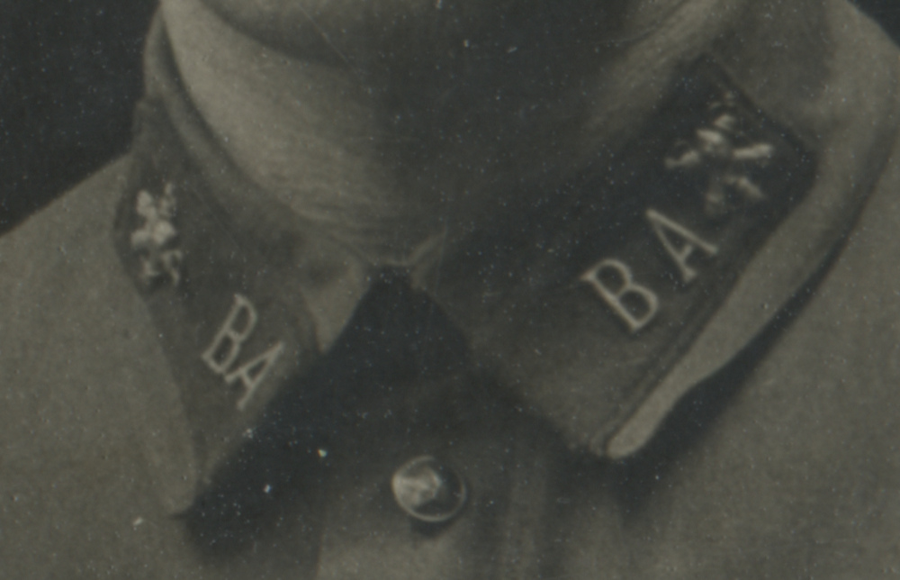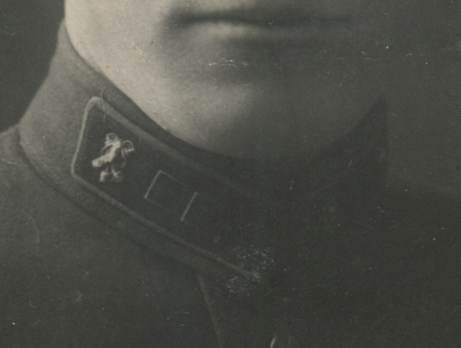 Снимок неизвестного командира демонстрирует редкую разновидность петличного значка химических частей («цельный рельефный»). Коллекция автора