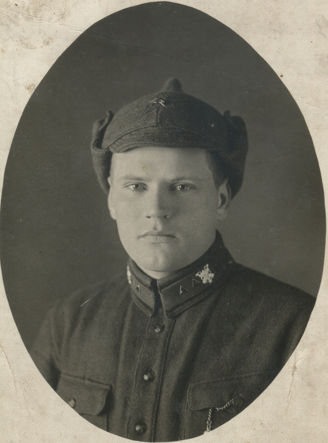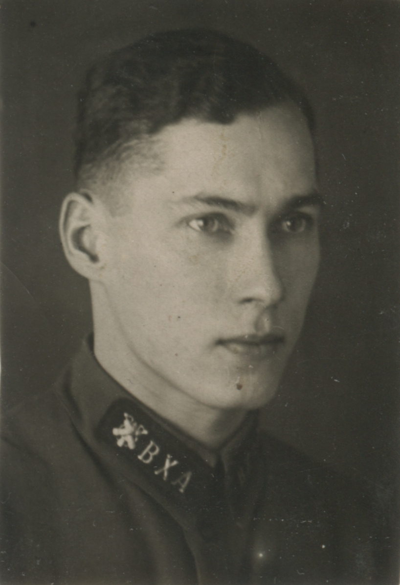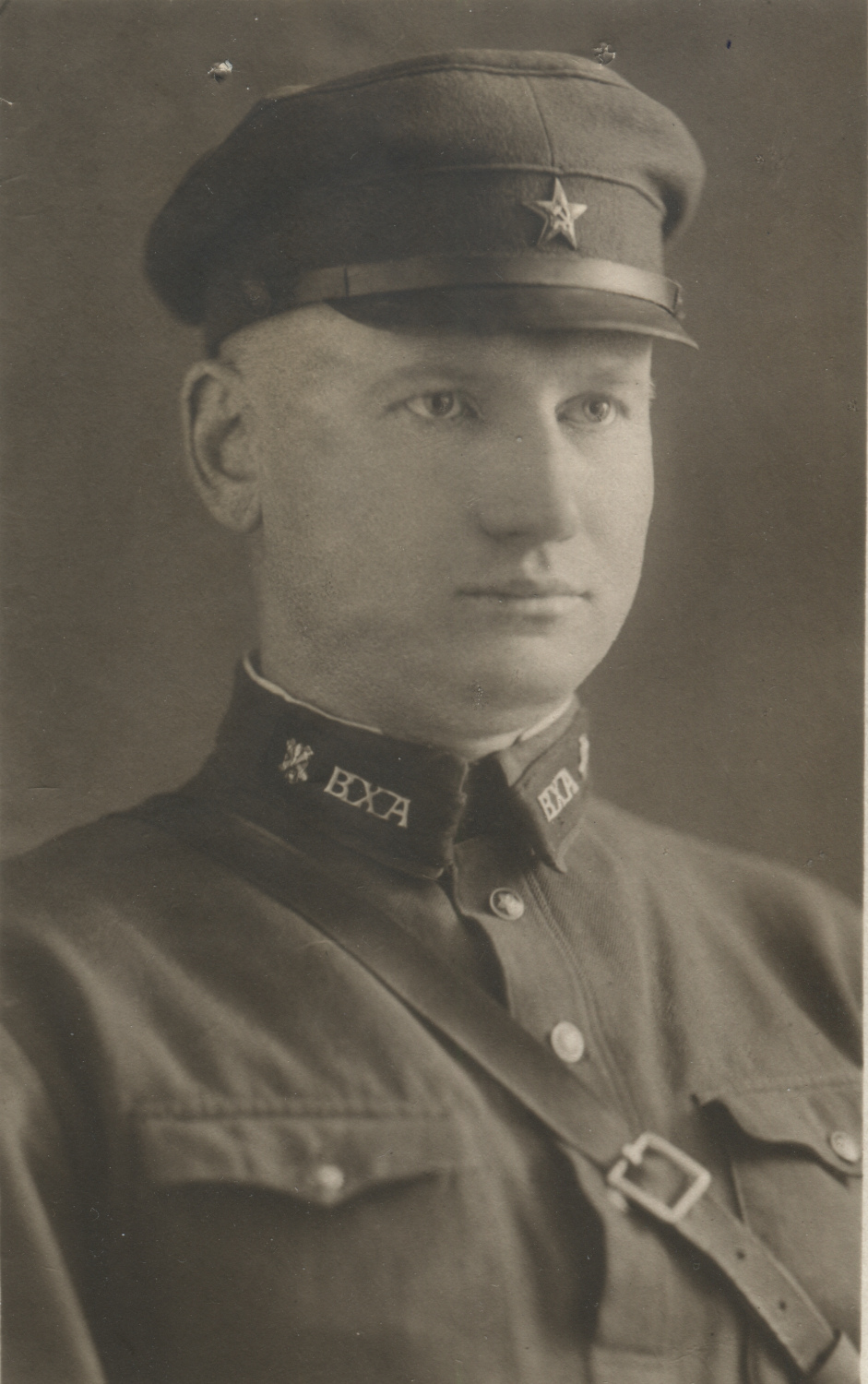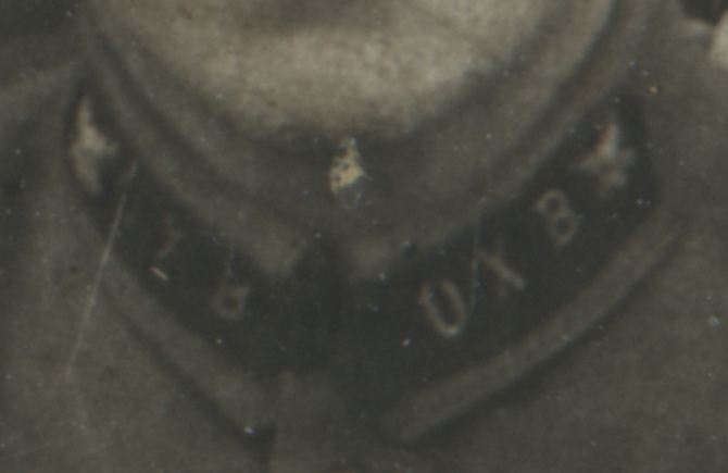 Слушатель 5-го курса Военно-химической академии РККА П.А. Рудаков с петличной шифровкой «ВХА» другого исполнения («цельноштампованной»). Коллекция автора