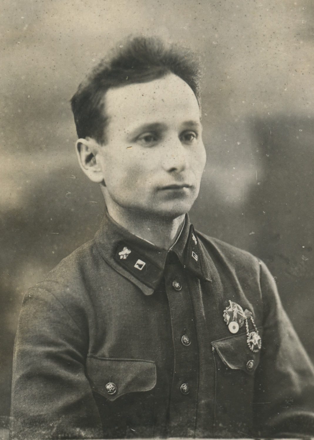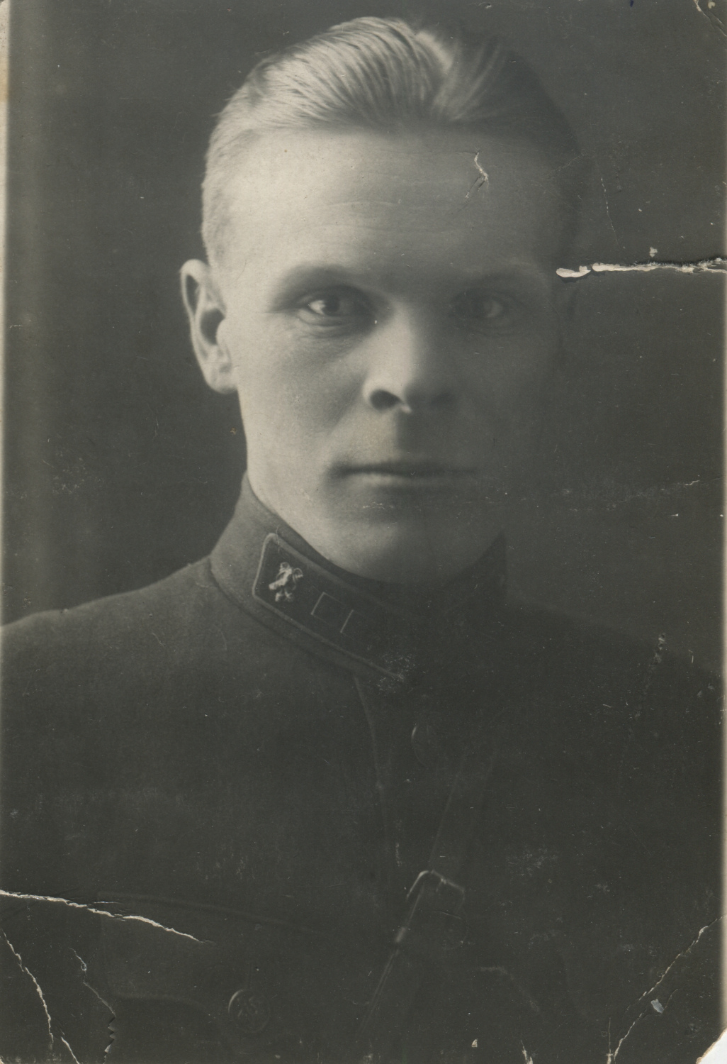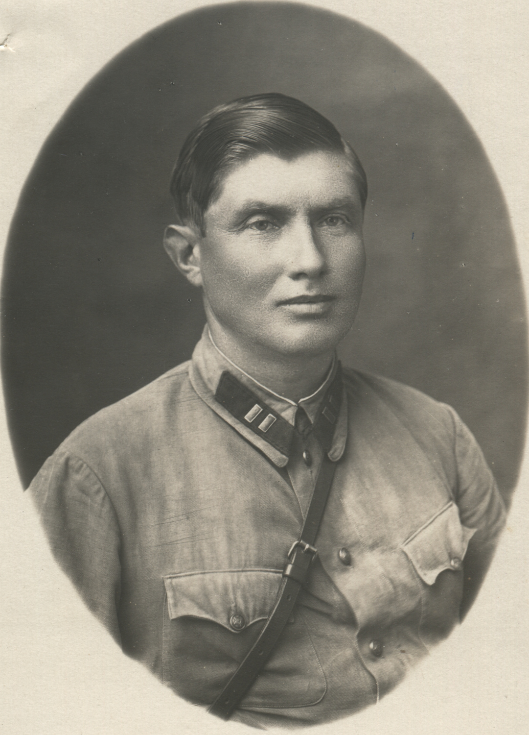 Слушатель 5-го курса Военно-химической академии РККА П.А. Рудаков с петличной шифровкой «ВХА» другого исполнения («цельноштампованной»). Коллекция автора