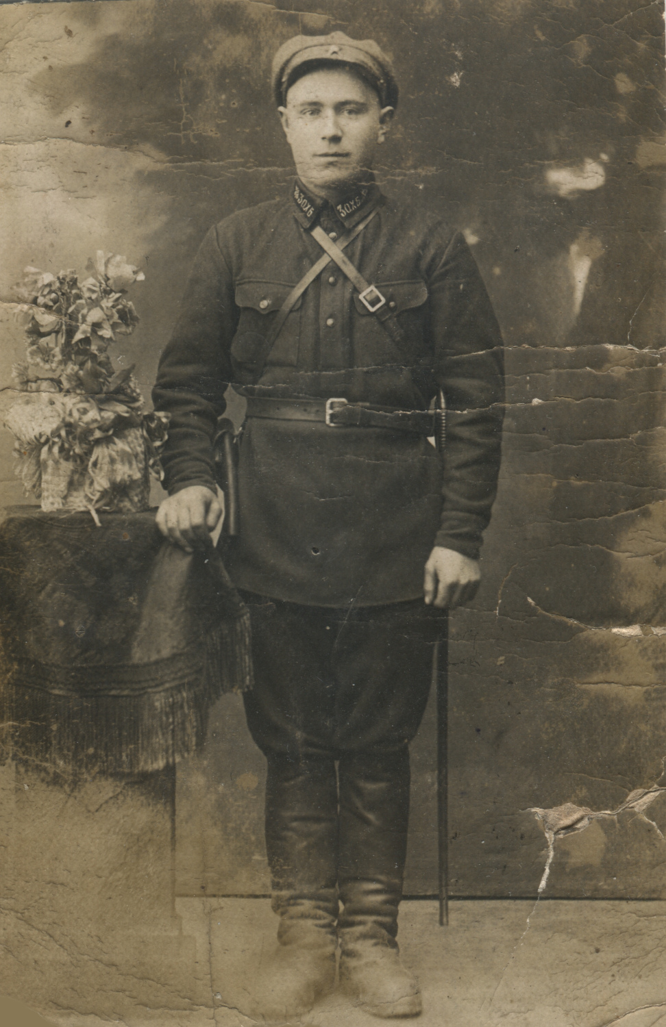 Красноармеец 1-го химического полка М.В. Галкин. Шифровка на петлицах («1ХП») нанесена краской. 17 ноября 1927 г. Коллекция автора
