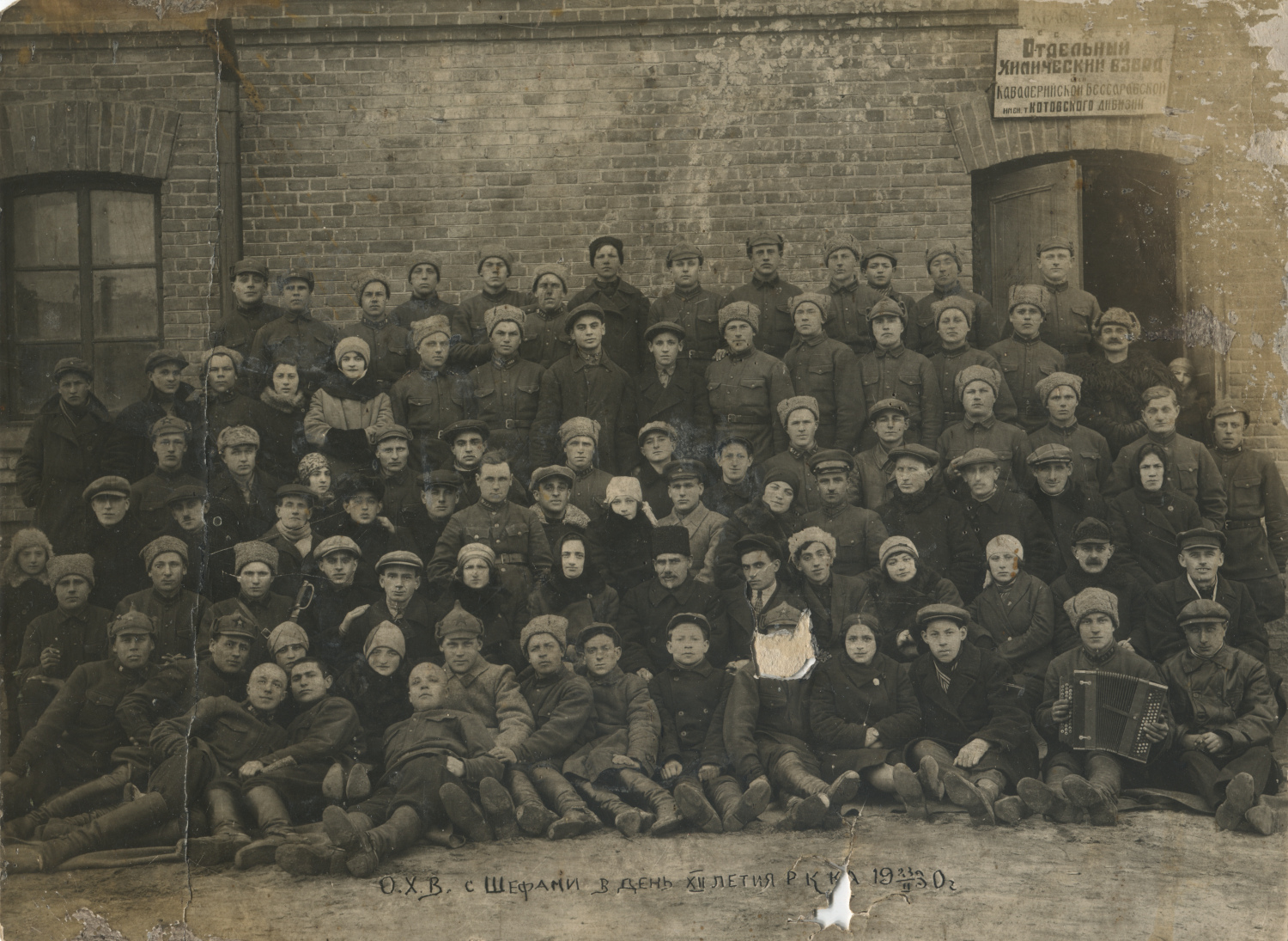 У военнослужащих отдельного химического взвода 3-й кавалерийской дивизии встречаются шифровки «ОХВ» и «3ОХВ», как металлические, так и выполненные краской. Бердичев, 23 февраля 1930 г. Коллекция автора