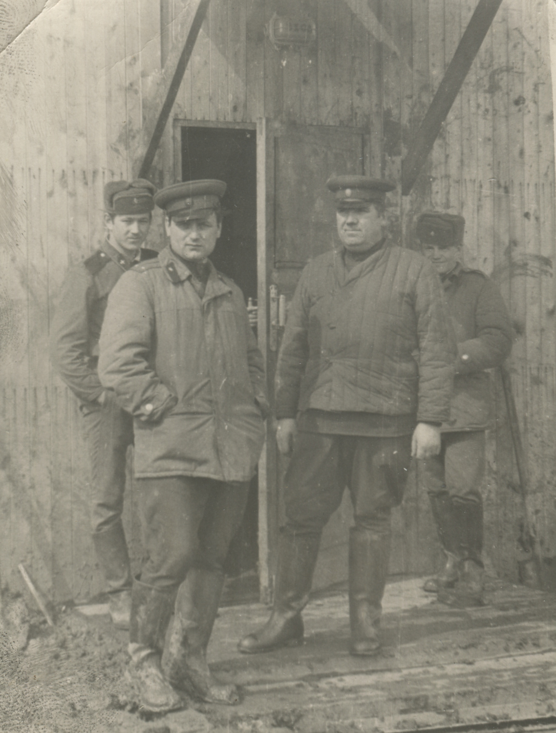 Офицеры в ватных куртках образца 1966 г. Даже на черно-белой фотографии хорошо видно, что куртки шились из материалов разных артикулов и оттенков. Коллекция автора