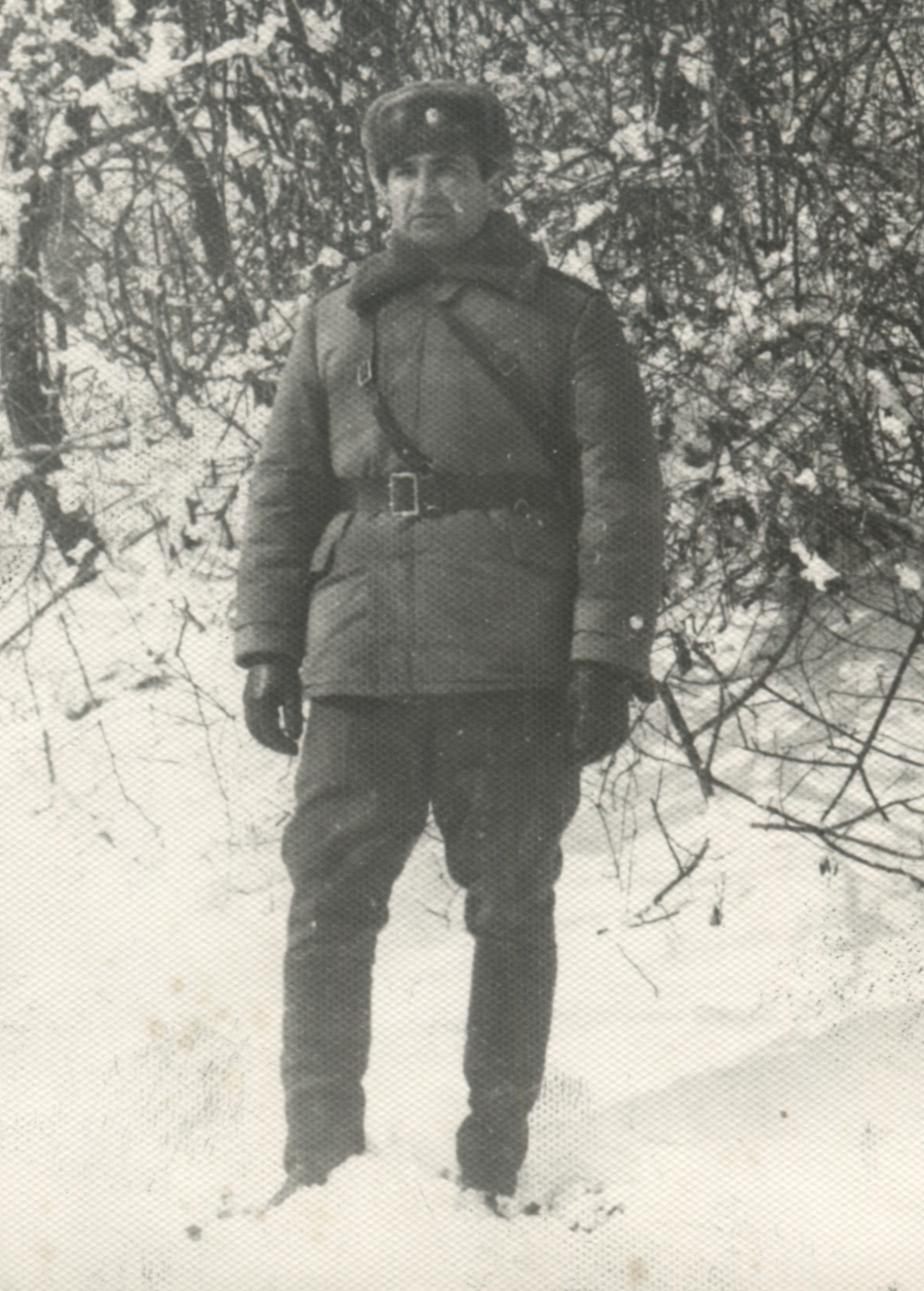Офицеры Советской армии в теплых куртках и брюках образца 1966 г., пошитых из тканей разных артикулов. Коллекция автора