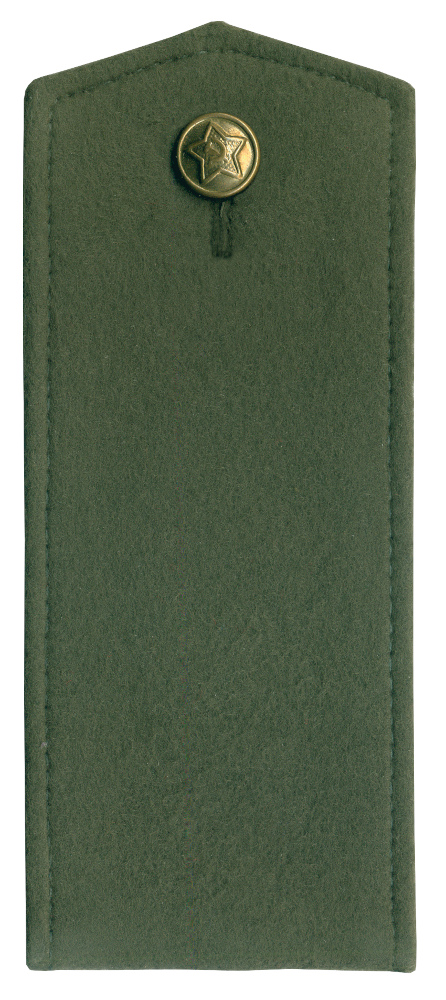 Погон сержанта срочной службы на ватную куртку, после 1969 г. Поле - из хлопчатобумажной замши защитного цвета, нашивки по званию - красные. Частная коллекция