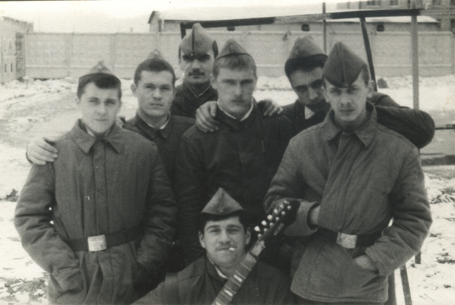 Немало пришлось помучиться с поиском иллюстраций для статьи. Так уж вышло, что в предмете нашего исследования парадных снимков в ателье не делали (хотя один униформологический курьез мы все же продемонстрируем). Практически все фотографии в ватных куртках - бытовые, снятые на некачественную технику и так же напечатанные. Не говоря уж о сюжетах, демонстрирующих все, что угодно, от неуставных отношений до примитивных развлечений советских срочников, но только не корректное ношение предмета обмундирования.