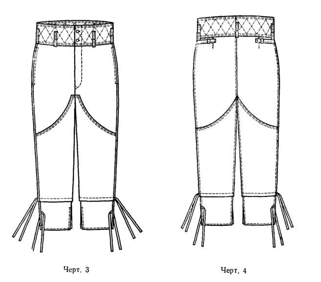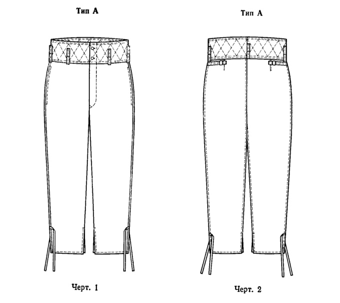 Рисунки брюк утепленных типрв А и Б из ГОСТ 24232-80 «Брюки утепленные для офицеров»