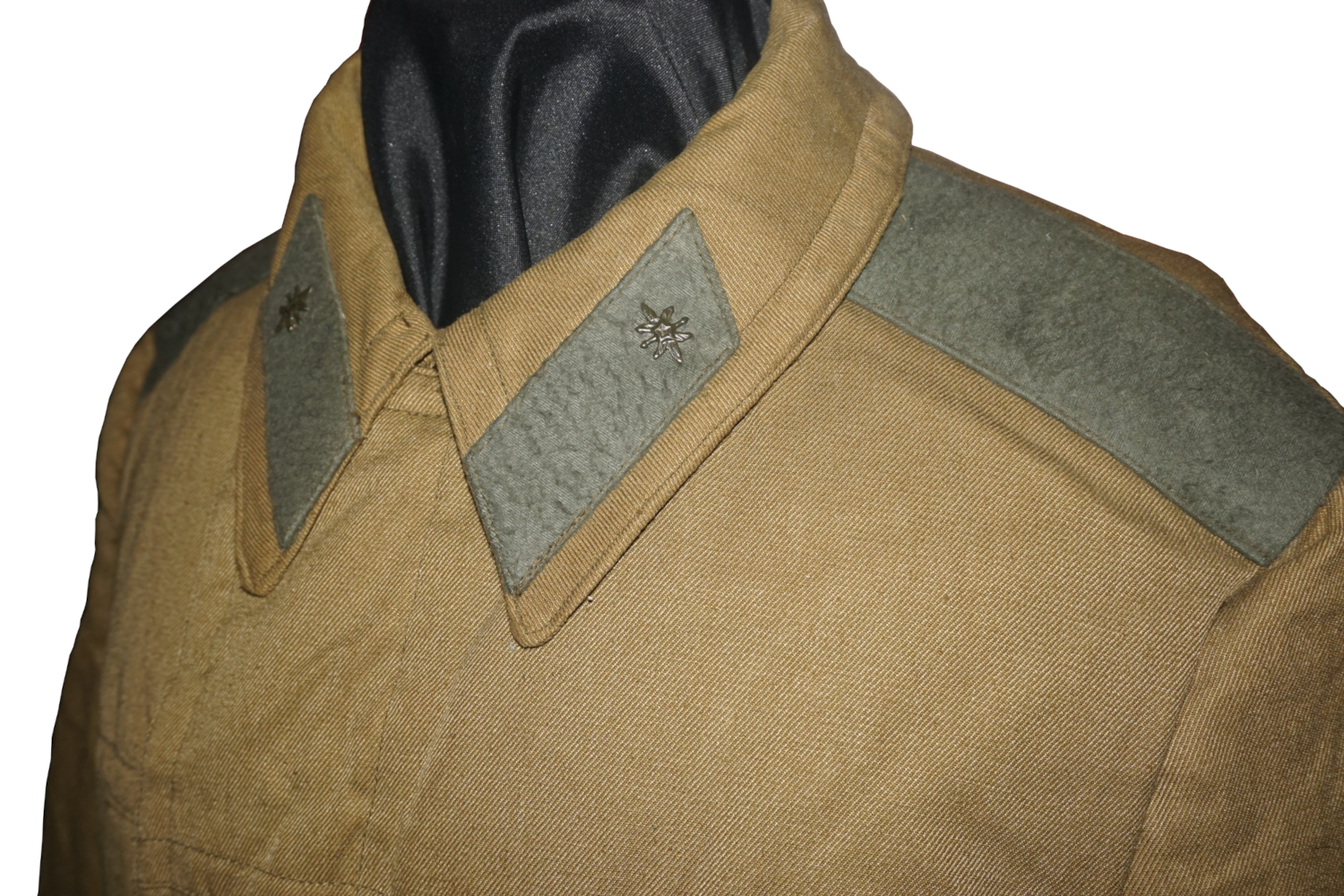 Погоны на куртке офицеров нашивались с полем защитного цвета и просветами по роду войск. При этом звезды и эмблемы, последние на куртках с меховым воротником, были золотистыми/серебристыми, а не защитного цвета.