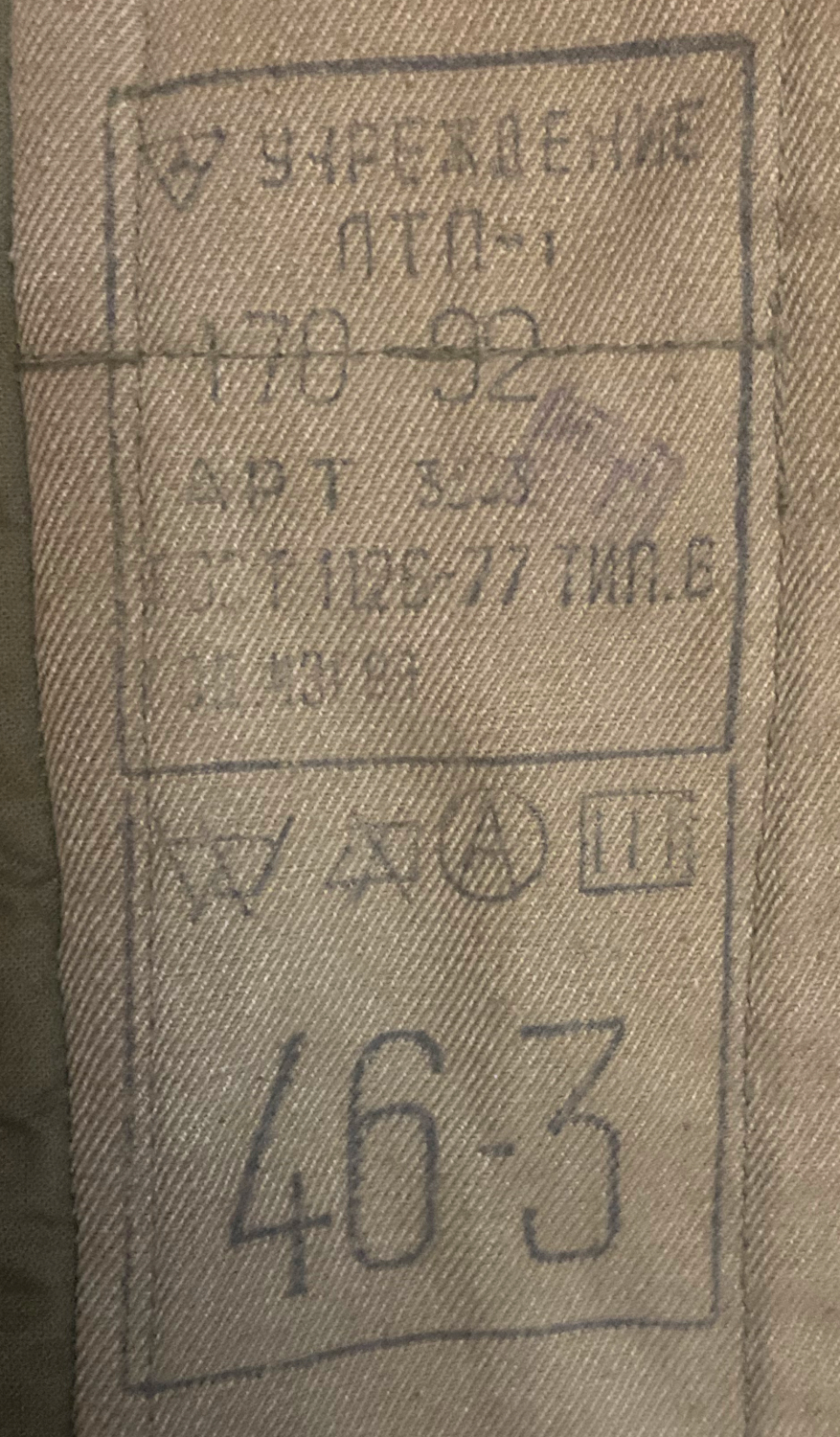 ГОСТы и ТУ, по которым были изготовлены предметы вещевого снабжения для Советской армии, зачастую с артикулами тканей, на фабриках-производителях (в учреждениях) указывались при клеймении [40].