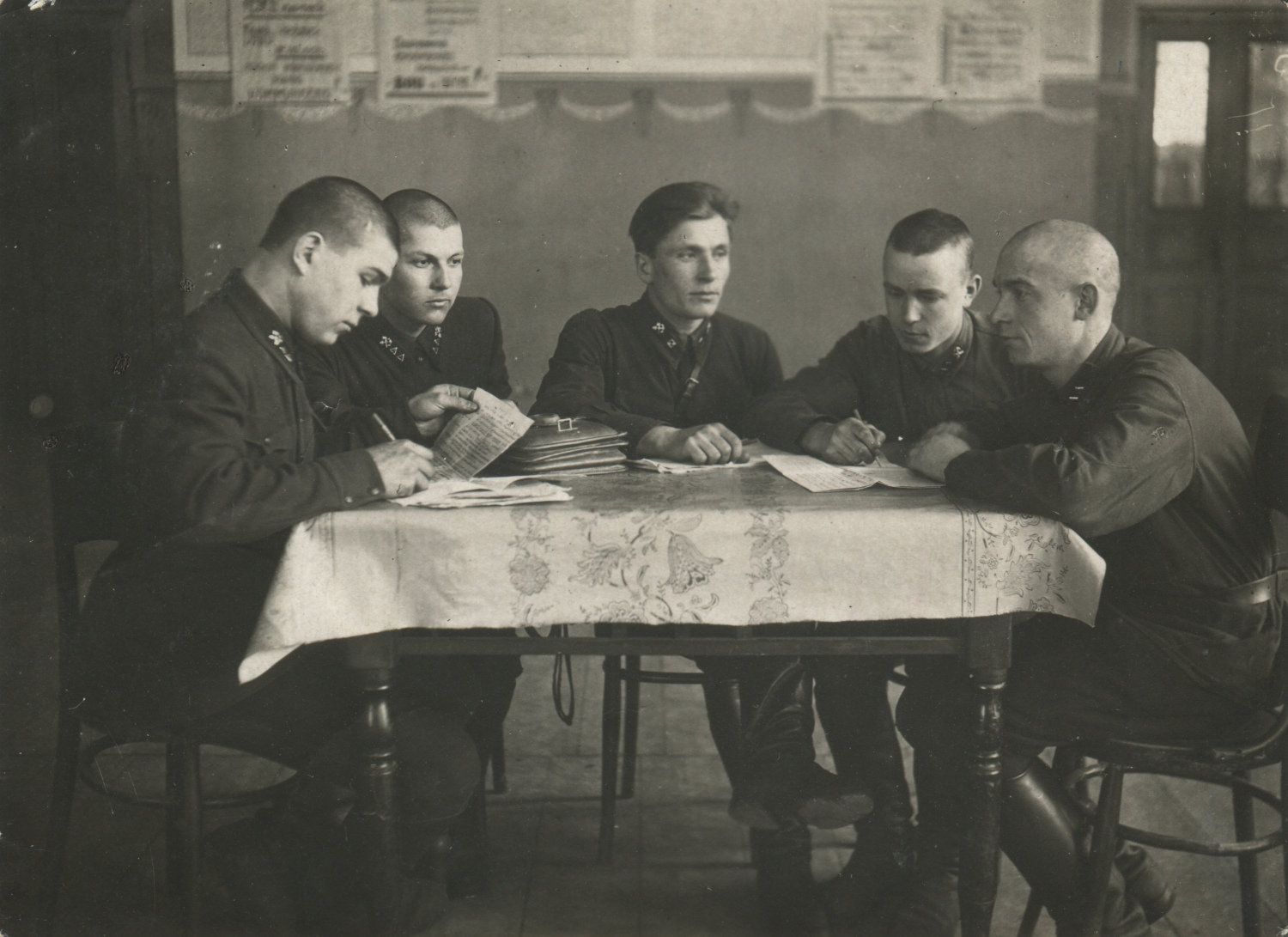 Президиум партийной ячейки полковой школы 3-го железнодорожного полка. Ново-Белица, февраль 1933 г. Коллекция автора