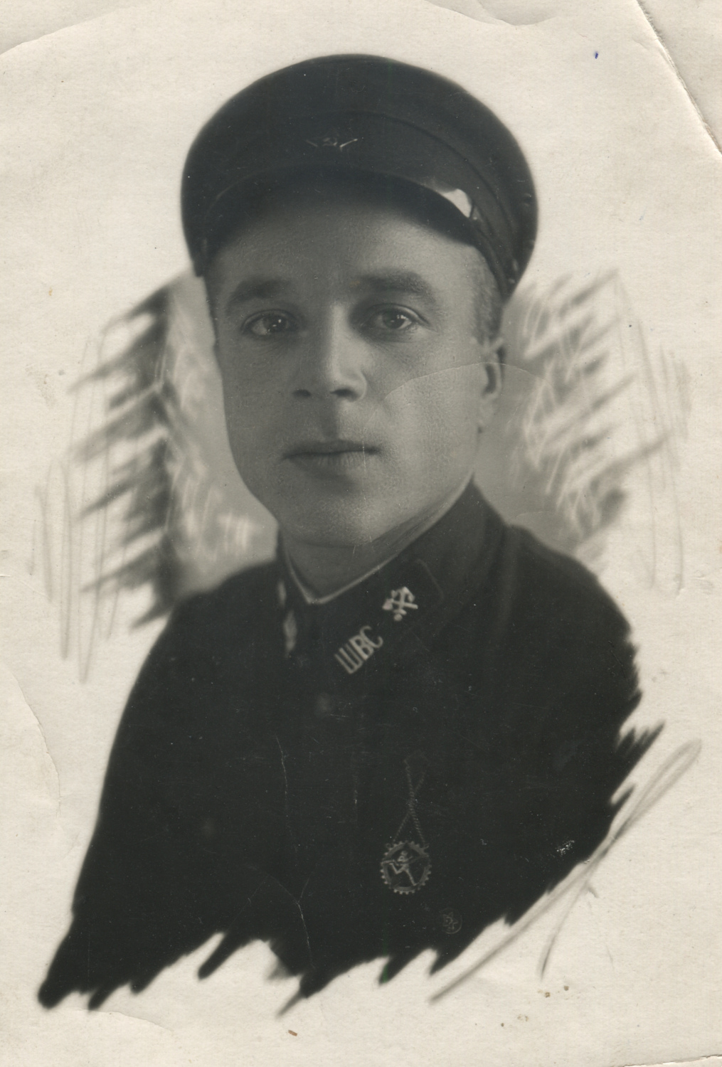 Курсант Школы военных сообщений РККА Н.М. Мельник с шифровкой «ШВС» на петлицах. В школе носились железнодорожные значки. Ленинград, 1935 г. Коллекция автора