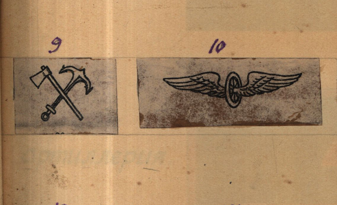 Рисунки значков значков № 9 и № 10 из приложения к приказу РВС СССР № 807 от 20 июня 1924 г. (РГВА, ф. 47, оп. 7, д. 125, л. 27).