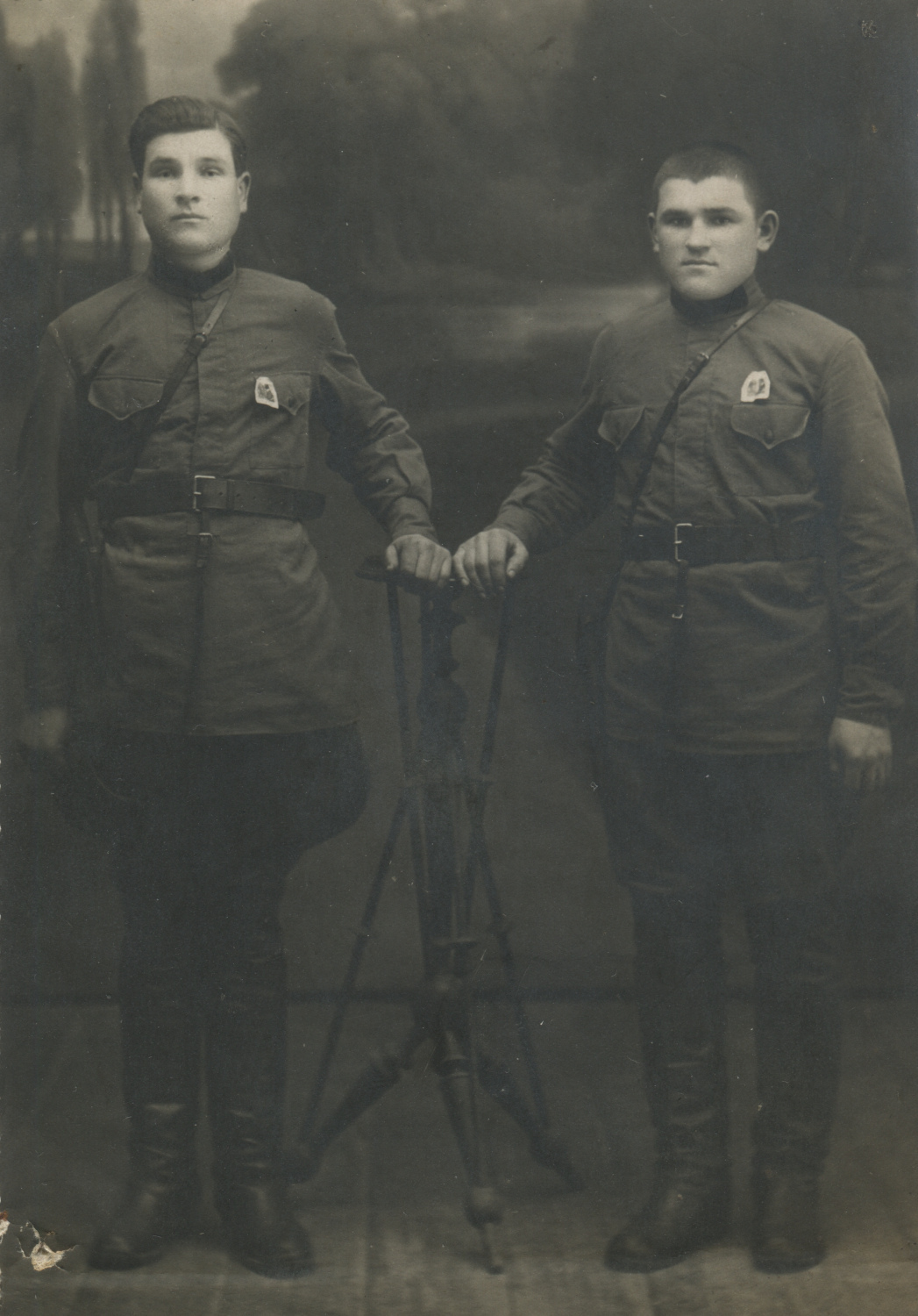 Военнослужащие 45-й отдельной конвойной роты П.Е. Артамохин и неизвестный красноармеец. Хабаровск (?), б/д. Коллекция автора