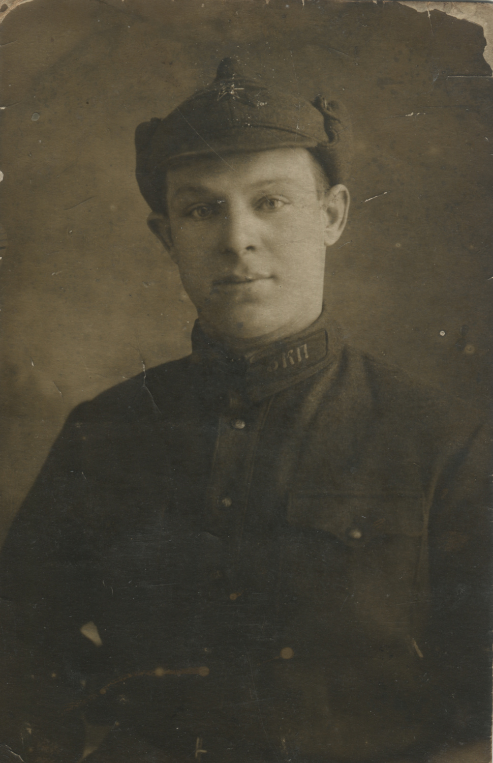 Неизвестный военнослужащий 1-го отдельного конвойного батальона с петличной шифровкой «1.О.К.Б.». Одесса, б/д. Коллекция автора