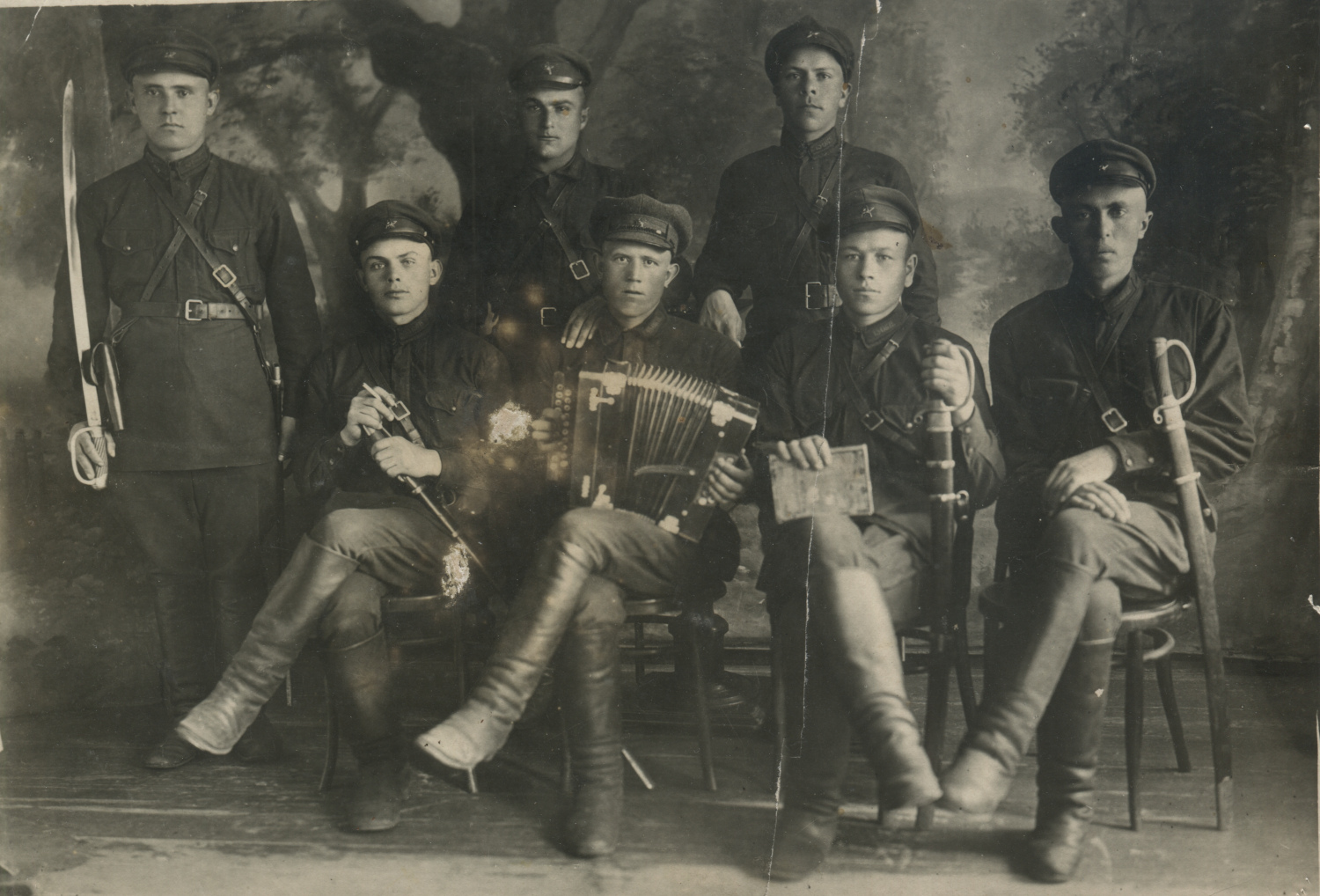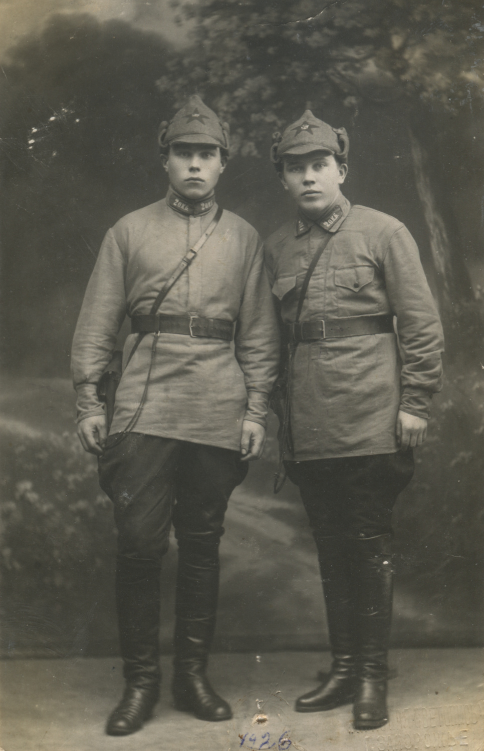 Красноармейцы с шифровками «4КП» и «4К.П.». Предположительно 4-й конвойный полк. Б/м, б/д. Коллекция автора