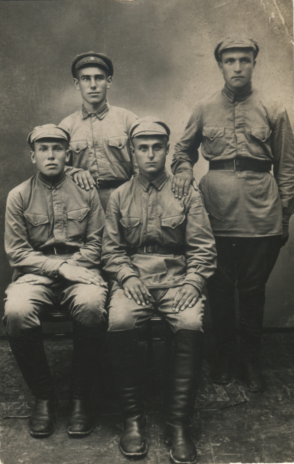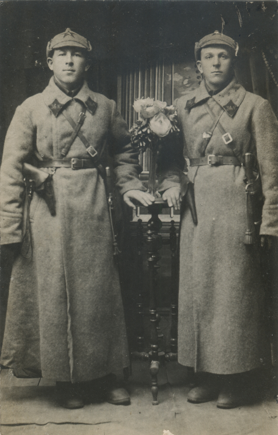 Красноармейцы с петличной шифровкой «36к.», предположительно атрибутированной нами как 36-я конвойная рота. Б/м, б/д. Коллекция автора