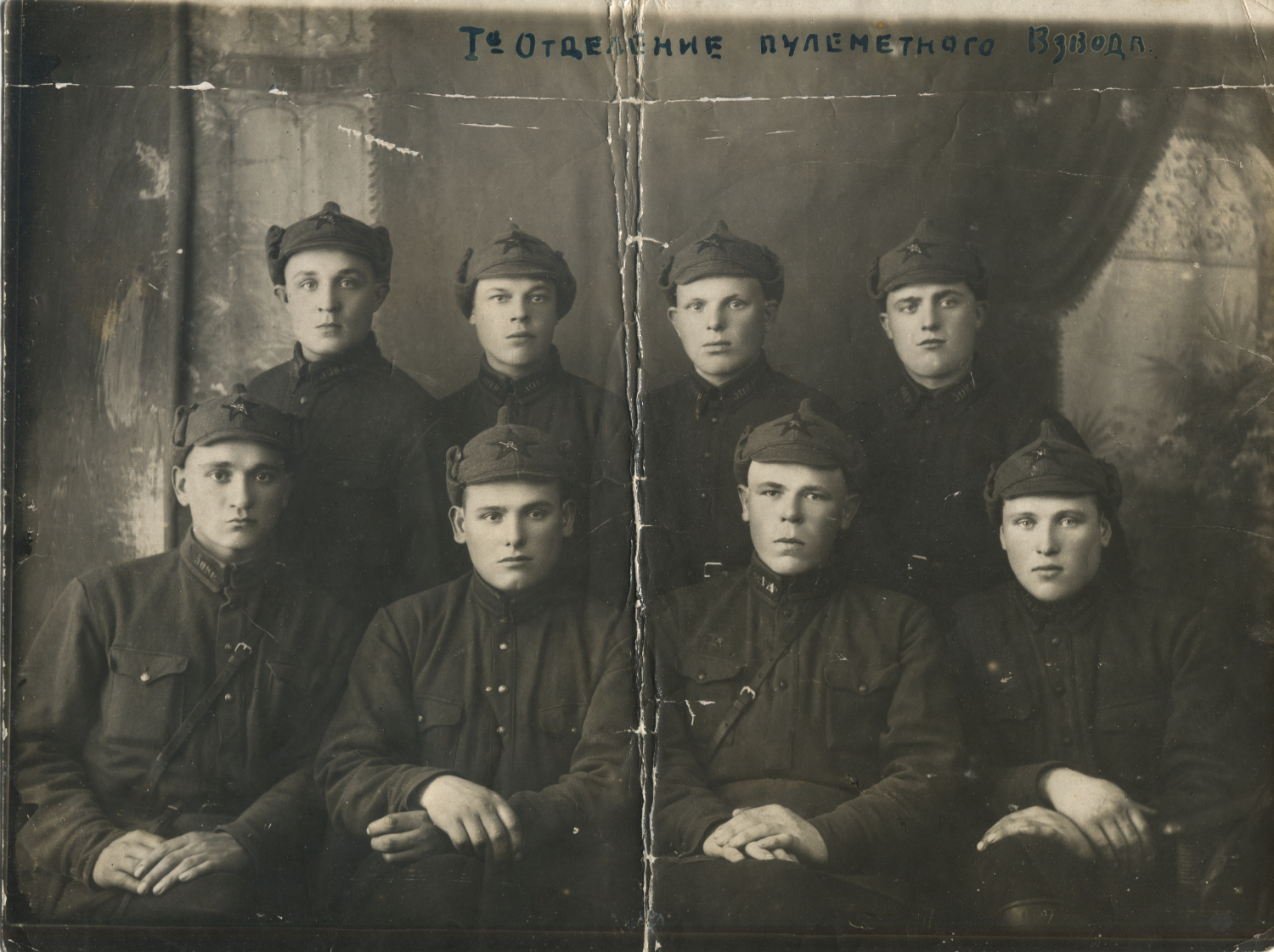 Отделение пулеметного взвода 5-й отдельной конвойной роты (предположительно). Петличная шифровка «5окр.». Б/м, б/д. Коллекция автора