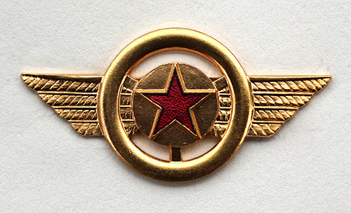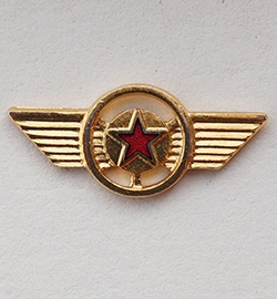 - эмблема летчиков и авиамехаников милиции в виде расправленных крыльев, соединенных внизу с красной пятиконечной звездой.