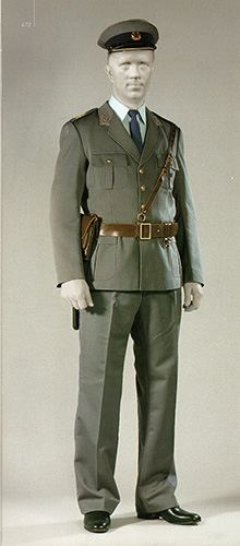 Форма одежды милиции СФРЮ из собрания Исторического музея Сербии. На воротнике кителя на основах цвета обмундирования - эмблемы ССУП в виде государственного герба СФРЮ диаметром 20 мм. Погоны на кителе со знаками различия «milicionar prve klase». Знаки различия и эмблемы установлены положением СФРЮ от 5 октября 1978 г. Службено одело у Србиjи у 19. и 20. веку – Београд: Историjски музеj Србиjе: Галериjа САНУ, 2001, с. 115