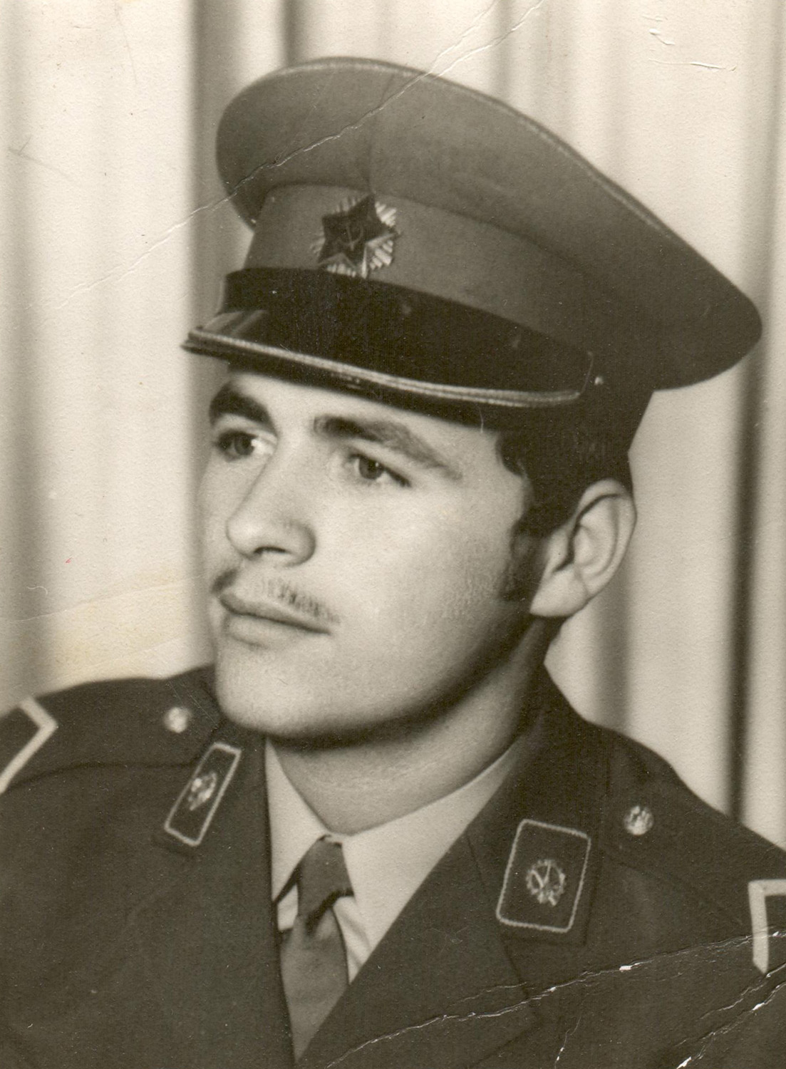 Подофицер (в звании «vodnik») с эмблемами технической службы KoV на основах цвета обмундирования. Для подофицеров основы (петлицы) введены в 1970 году. Ниш, октябрь 1972 г. Частная коллекция