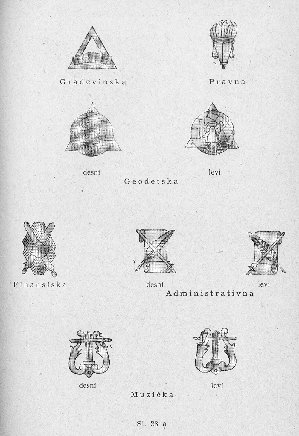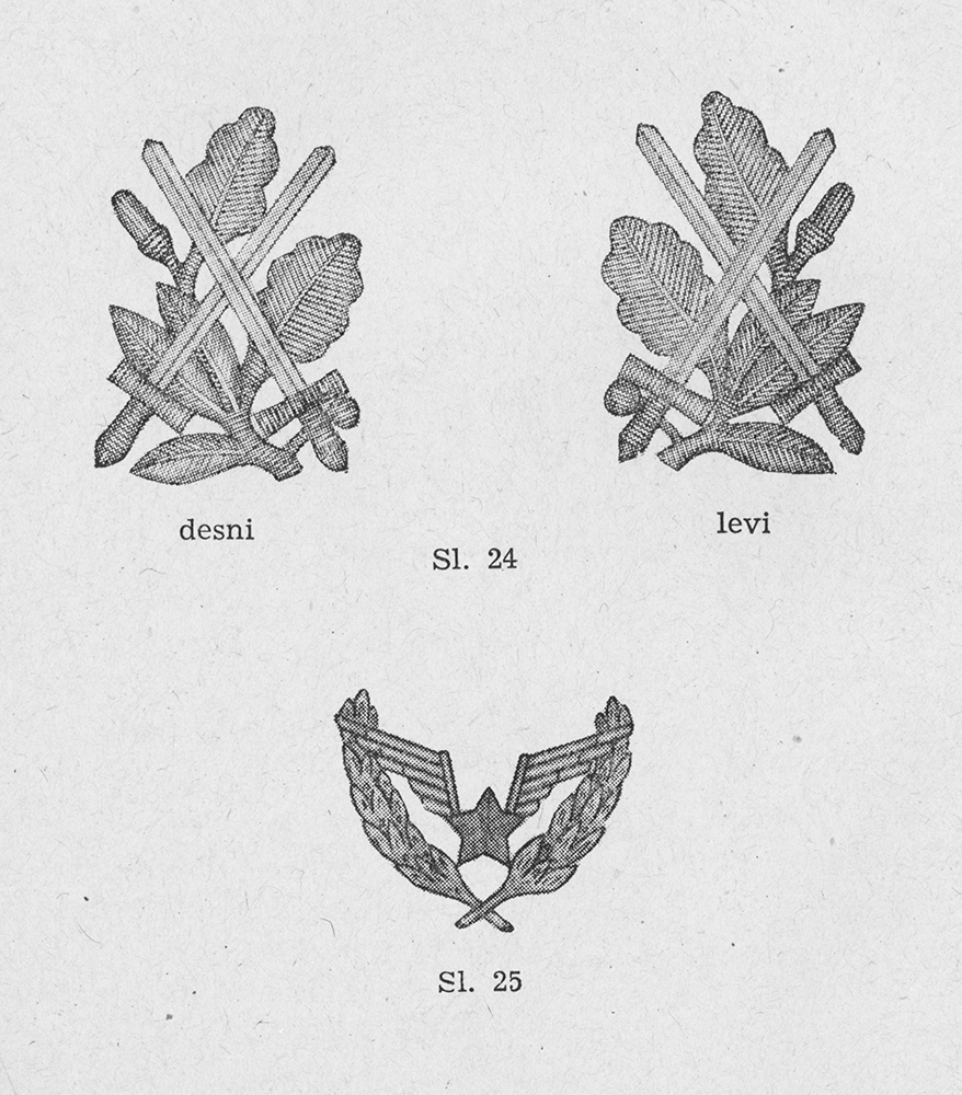 Рисунки знаков для слушателей и курсантов RM. Pravilo o odeći Jugoslovenske narodne armije - [Beograd]: Državni sekretarijat za poslove narodne odbrane, 1955, s. 38-39