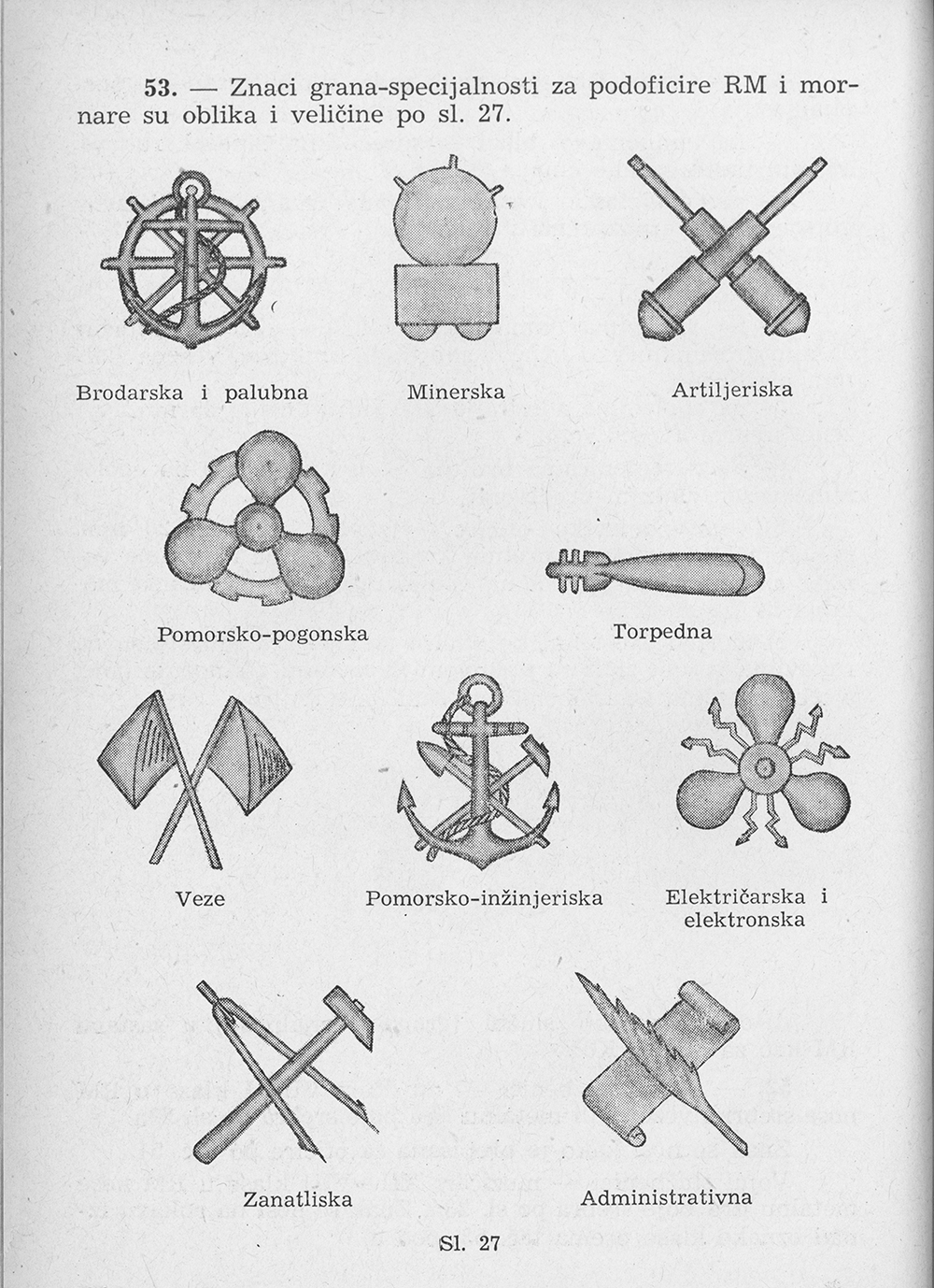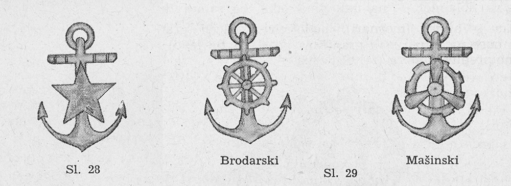 Рисунок эмблемы морской технической службы RM. Pravilo o odeći Jugoslovenske narodne armije - [Beograd]: Državni sekretarijat za poslove narodne odbrane, 1955, s. 35