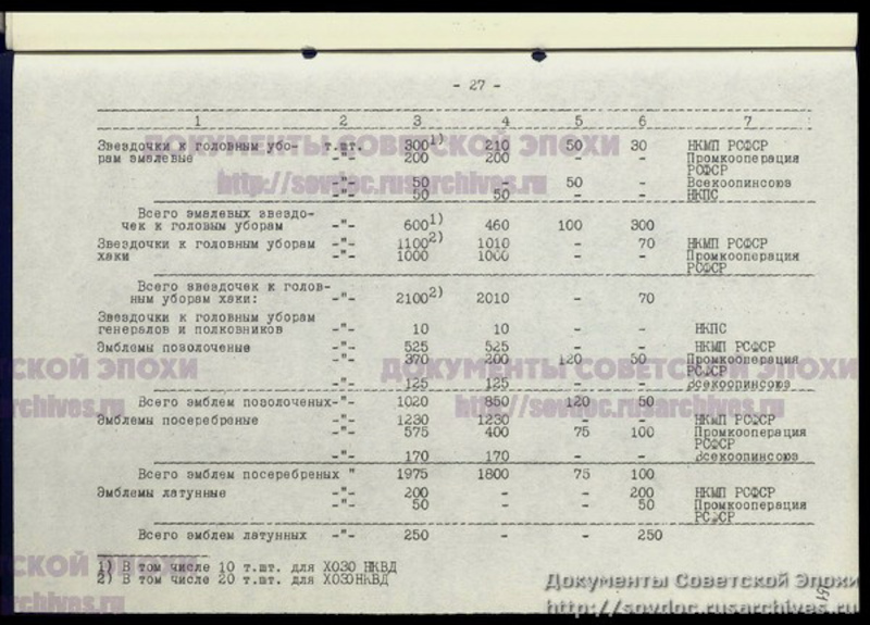 [8] - Сканы планов производства и поставок вещевого имущества для Красной Армии, Военно Морского Флота и Войск НКВД размещены на сайте «Документы советской эпохи» http://sovdoc.rusarchives.ru