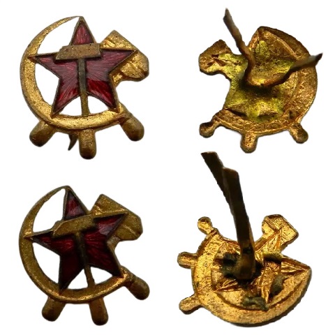 Рассмотрим также другую продукцию заводов НКПС, которая изготавливалась в пределах этого временного диапазона, например, эмблемы к погонам НКПС [7]. Очевидно, что они не могли быть изготовлены ранее 1943 года, однако технология их изготовления полностью совпадает с тем, как изготовлены рассматриваемые звезды. Те же эмаль, такие же кламера, и даже припой, которым они прикреплены, совпадает с рассматриваемыми звездами.
