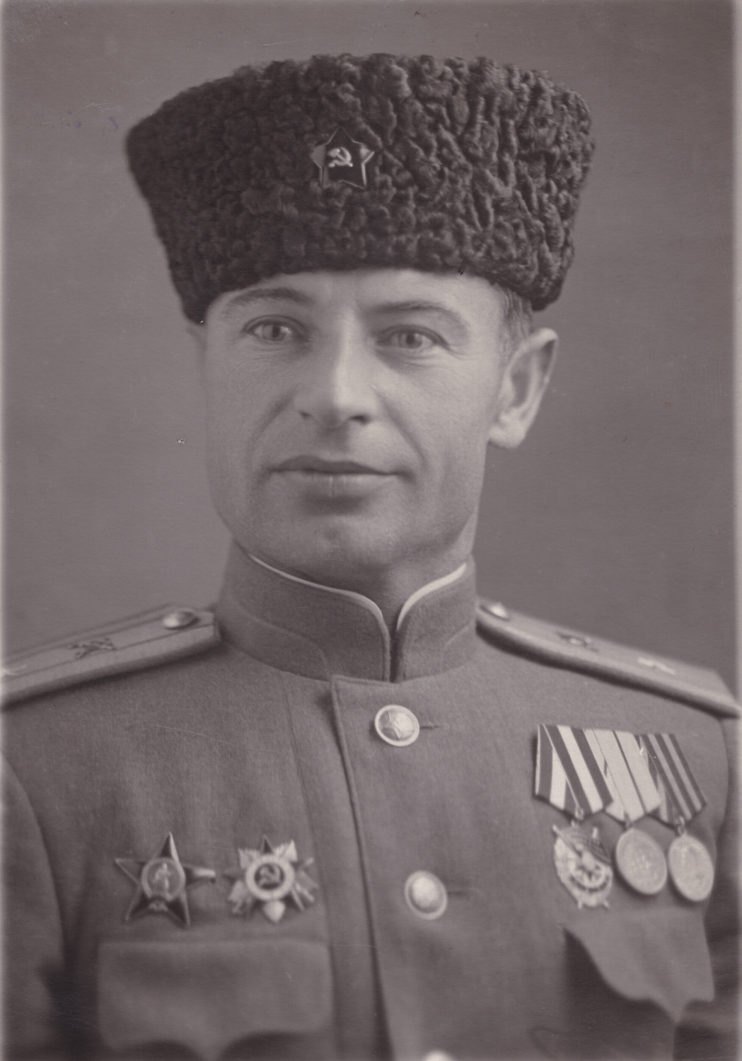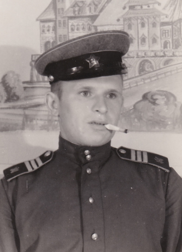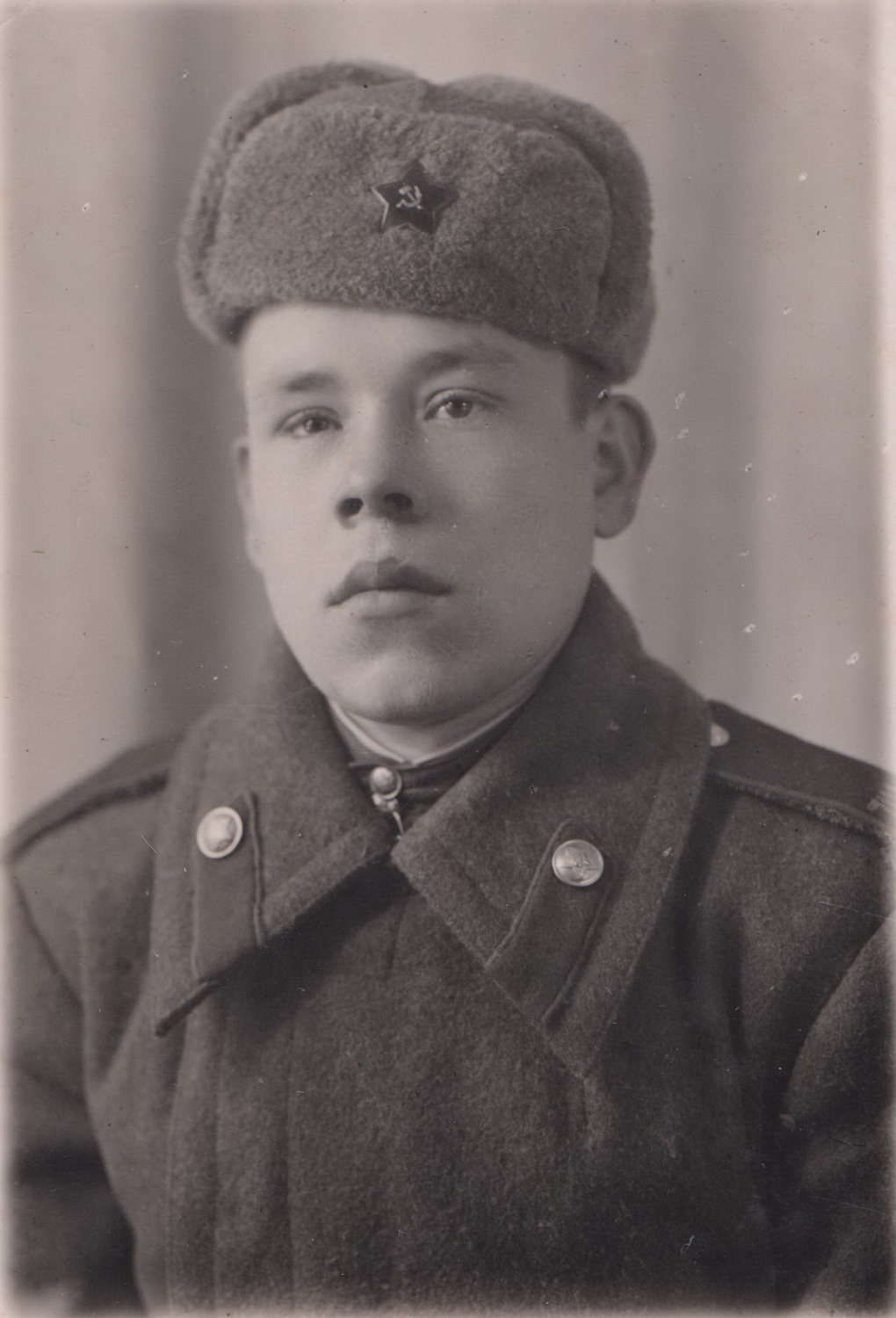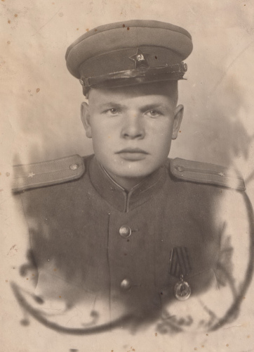 Рядовой Василий С. в шапке-ушанке с немагнитной звездой. Москва, июнь 1947 г. Коллекция автора