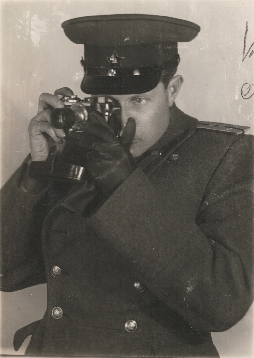 Неизвестный капитан в шинели и фуражке. Знак головного убора - описываемая в статье звезда. Коллекция Е. Недбайло
