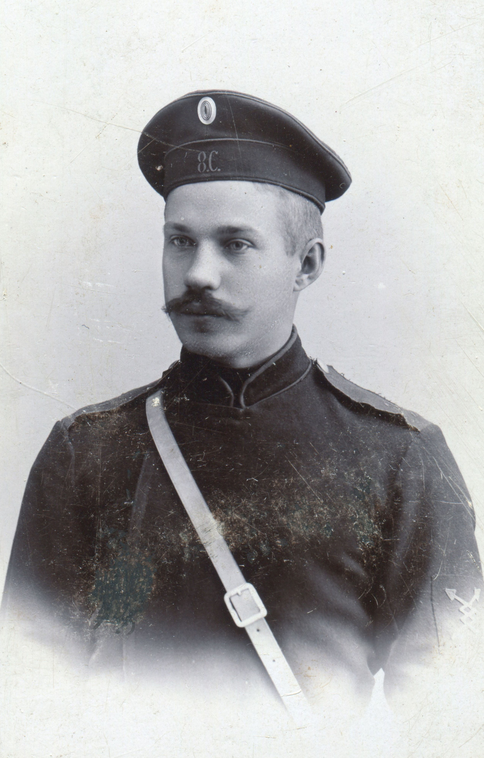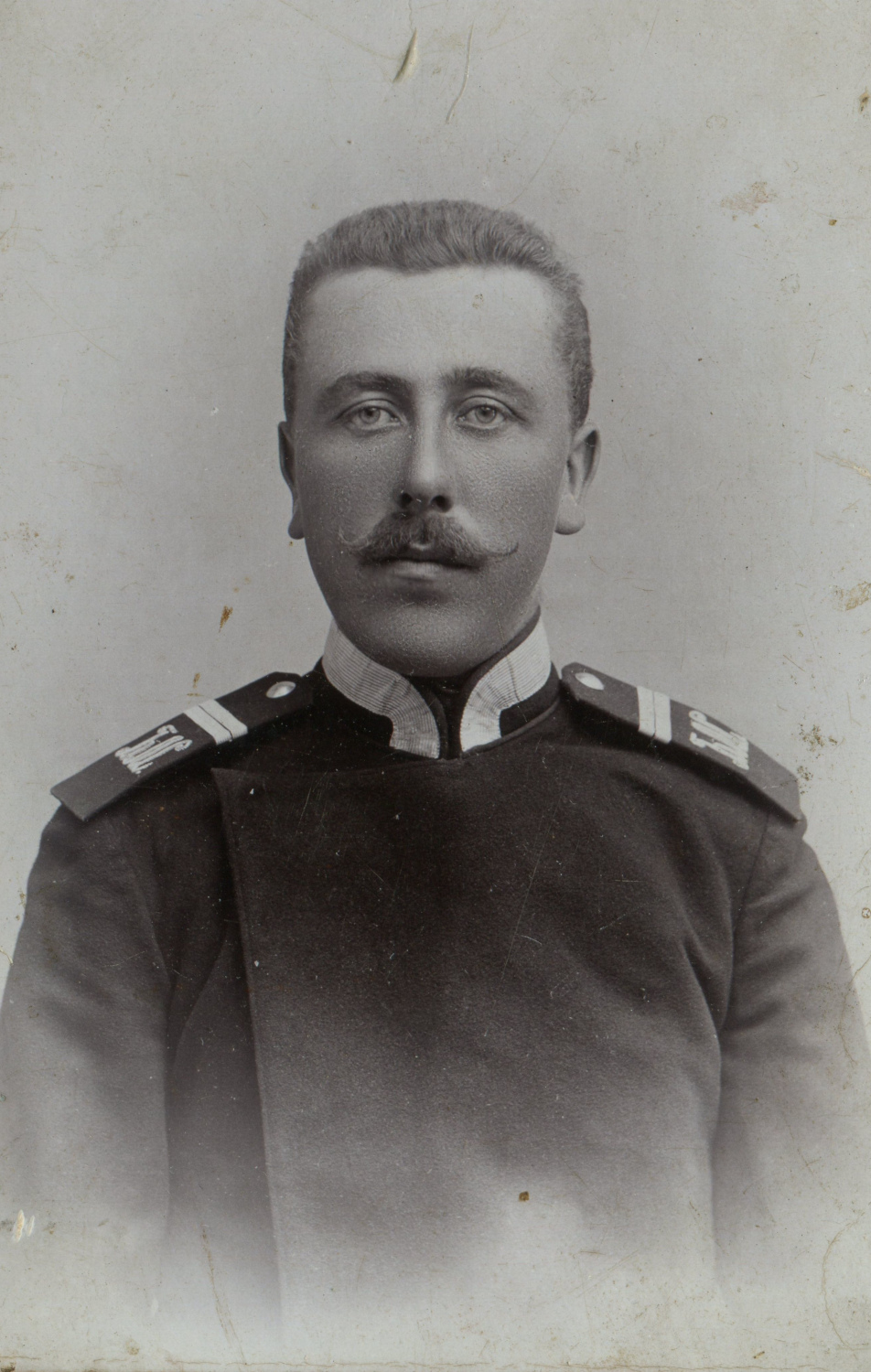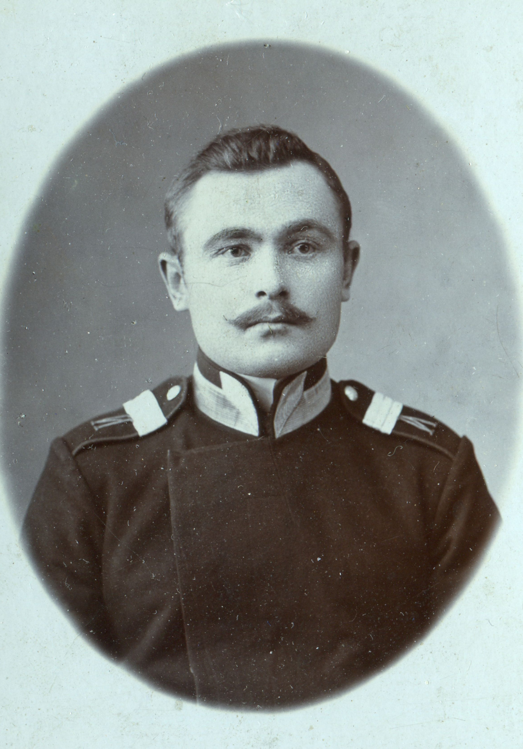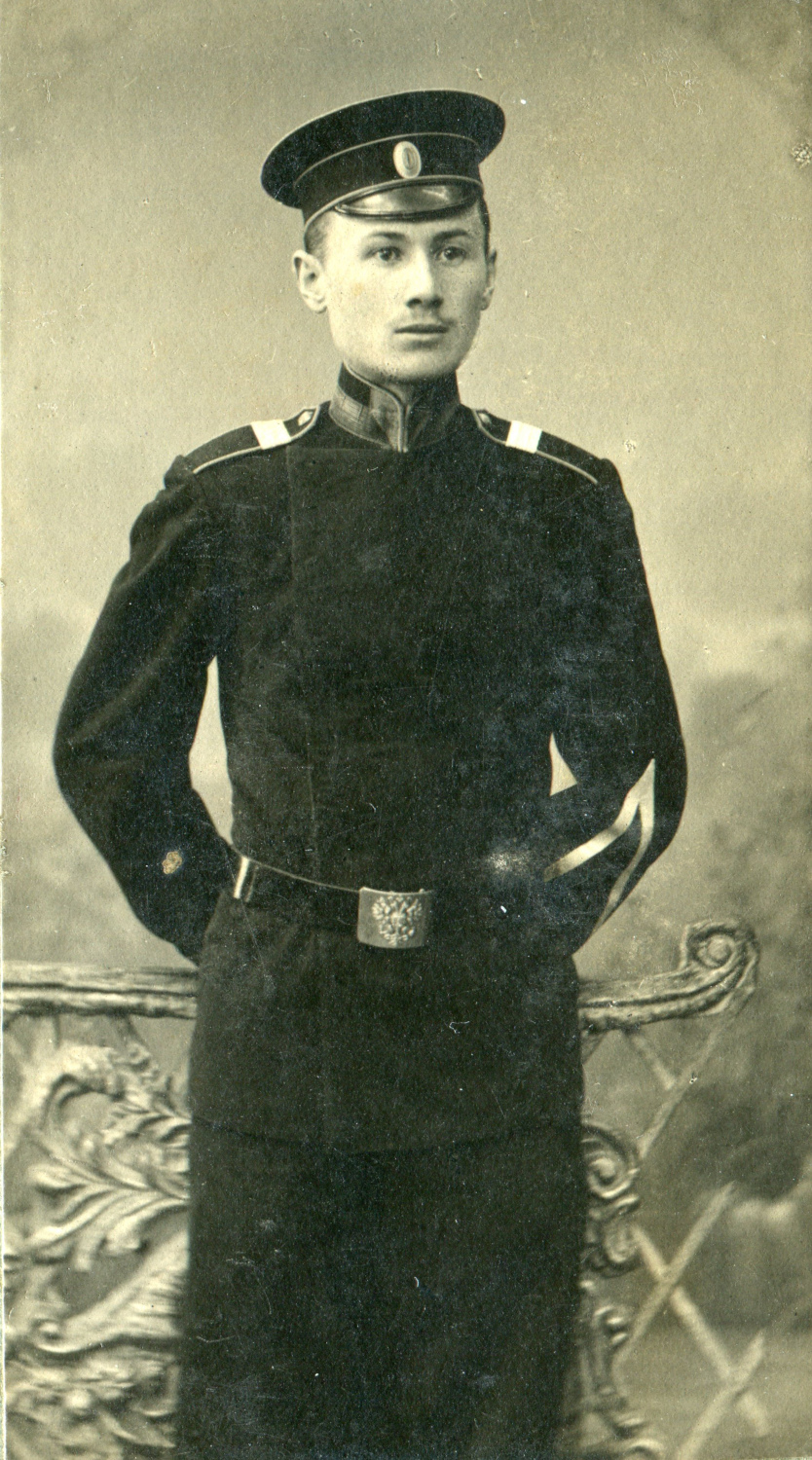 Нестроевой старшего разряда Михайловского артиллерийского училища С. Титов. 3 мая 1909 г. Коллекция Кирилла Сологуба.