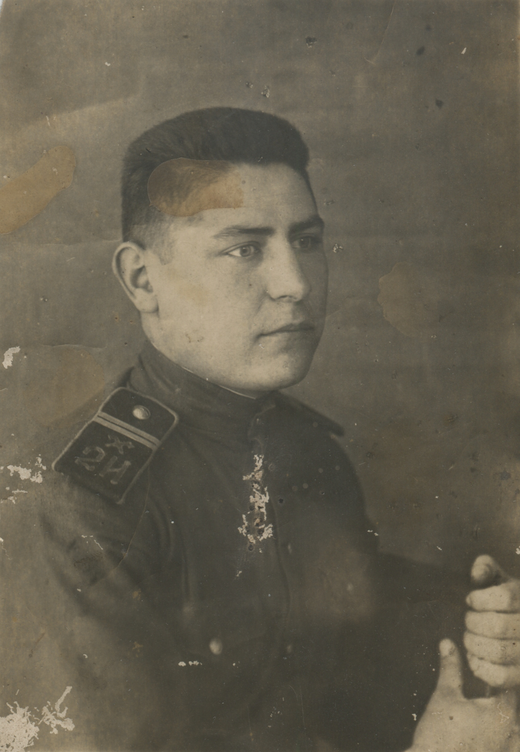 О том, что он проходил службу во 2-м инженерно-противохимическом полку НКВД свидетельствует «приказная» шифровка «2И» на его погонах совместно с эмблемой инженерных войск [3]. Совпадают места службы И.С. Тинькова (Тынькова) и дислокации 2-го ипхп МПВО (г. Москва), а также цветовая гамма погон НКВД, какой она обычно выглядит на черно-белых снимках.