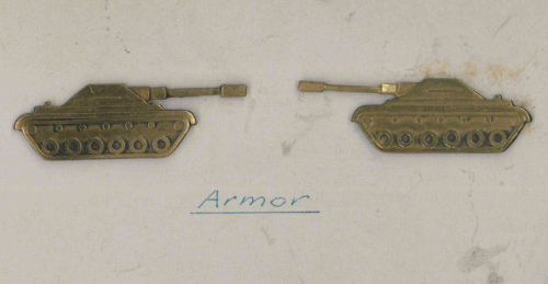 18. Зеркальная пара эмблем танковых войск в виде изображения танка в профиль. |