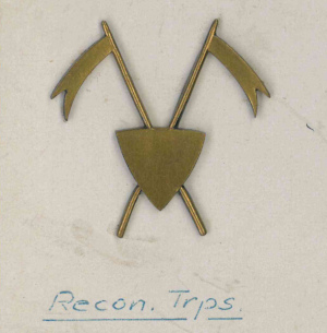 20. Эмблема разведывательных войск в виде изображения треугольного щита на скрещенных пиках с флюгерами. |